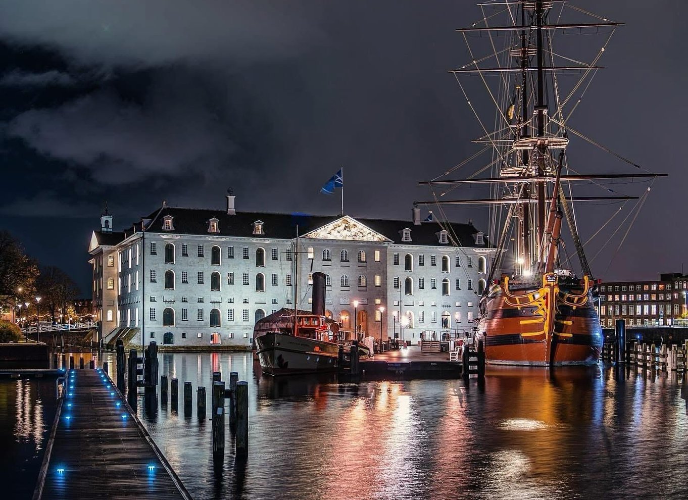 Head out through the IJ and toward the lights on the City. Pass by the sights like the Nemo and the fully restored Maritime Museum. We sail through the canals of Amsterdam to see the various art works