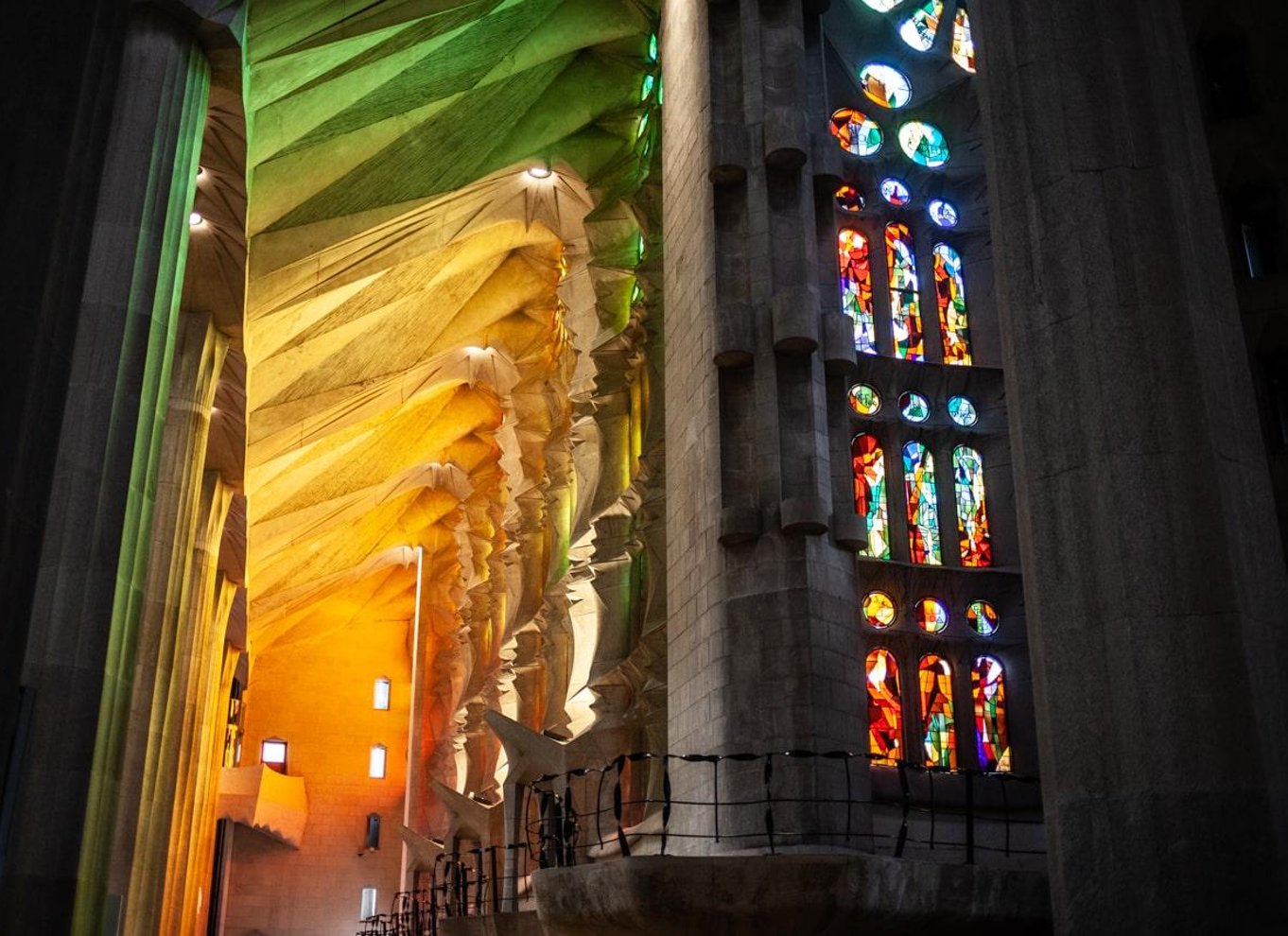 Our tour begins in the Gaudí Dôme, an immersive art installation that sets the stage for the magic to come. With over 1,000 screens, this dimly lit space brings to life the natural world that inspired the architect's vision.