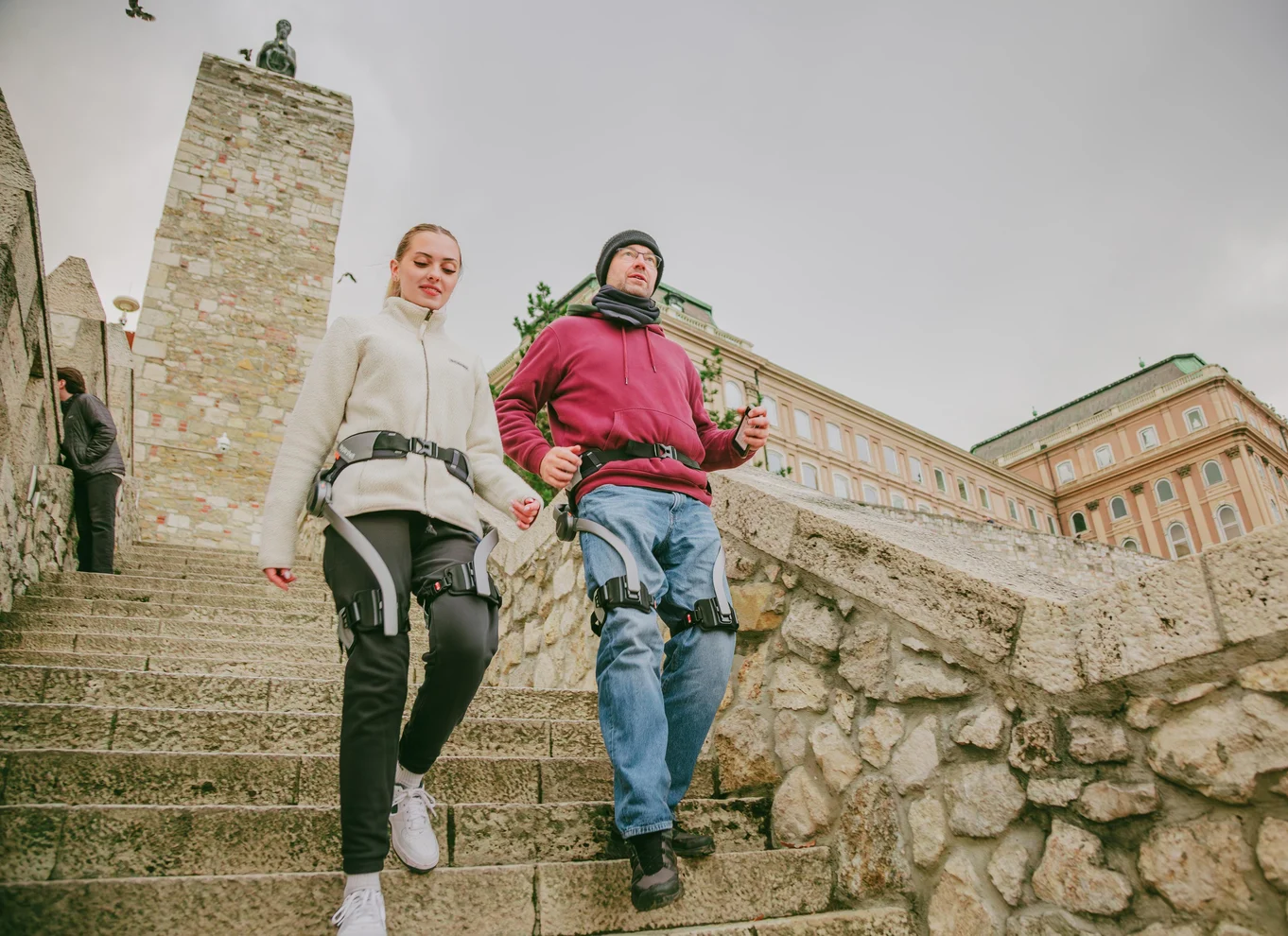 The world-first exoskeleton city climb in Budapest: walk in electric powered mode, conquer hills with ease and enjoy viewpoints, playful freedom & sci-fi vibes as your legs feel quietly upgraded.