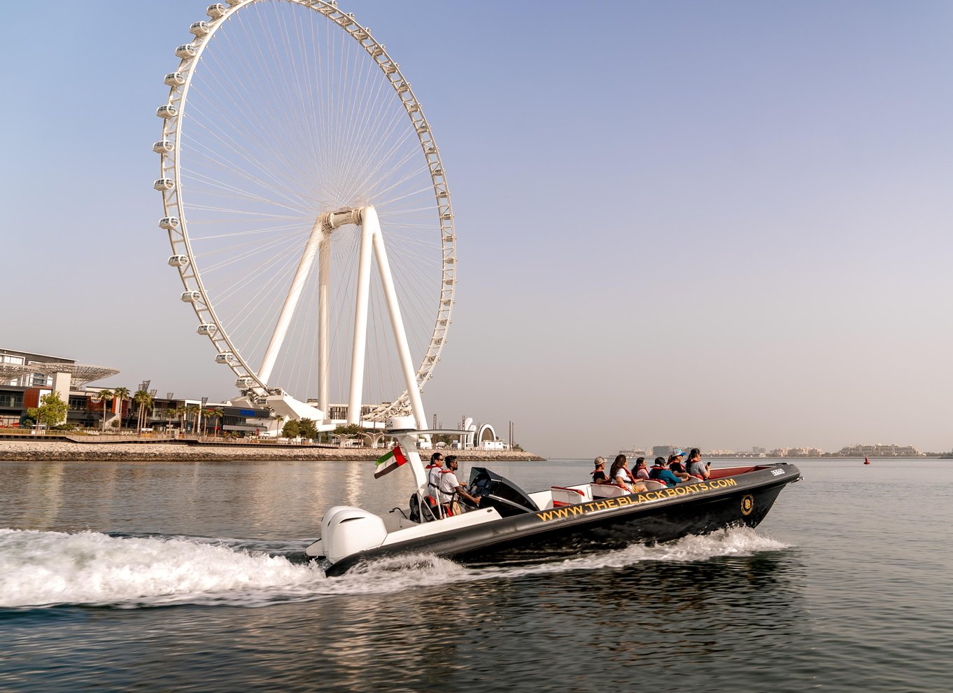The Tour starts from Marina Yacht club, offering stunning views of the Dubai Marina canal, Ain Dubai on Bluewater Island, Jumeirah Beach Residence, Dubai Sky Dive Center, the Atlantis and Atlantis Royal hotels on Palm Jumeirah, and finally Burj Al Arab, where there will be plenty of opportunities to take amazing photos with striking backdrops of the attractions. Book now and Enjoy a premium experience with The Black Boats in Dubai Marina.