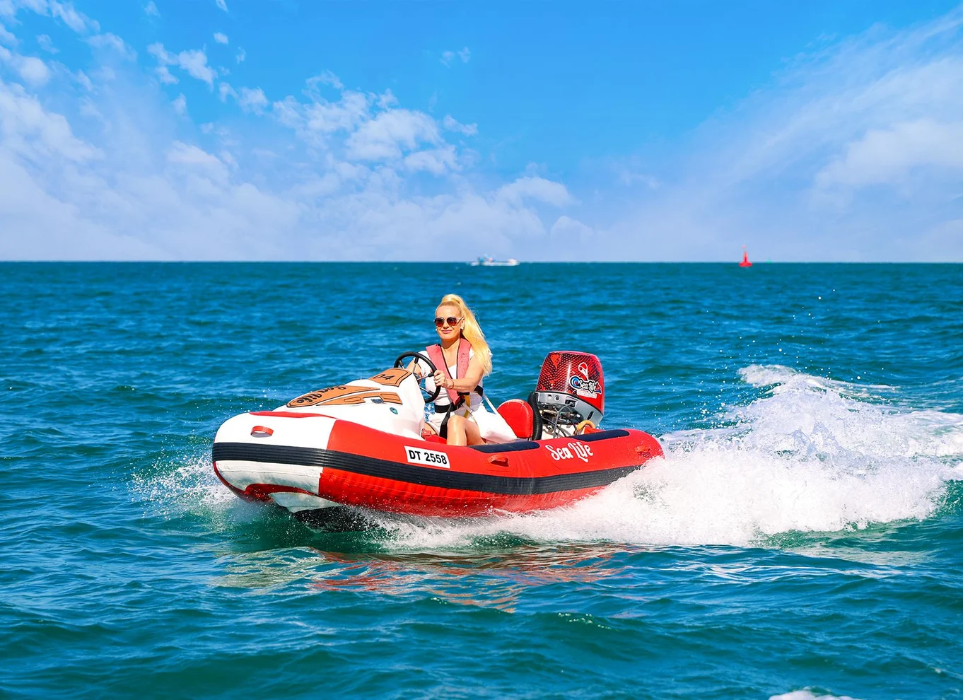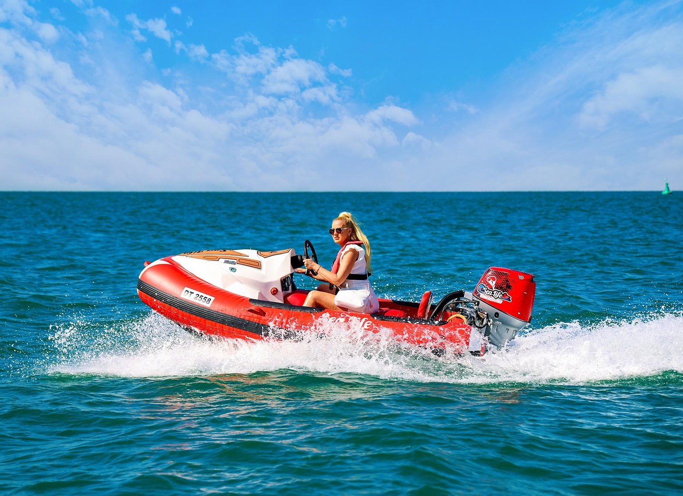 - Feel an adrenaline rush while driving your own boat with one extra passenger
