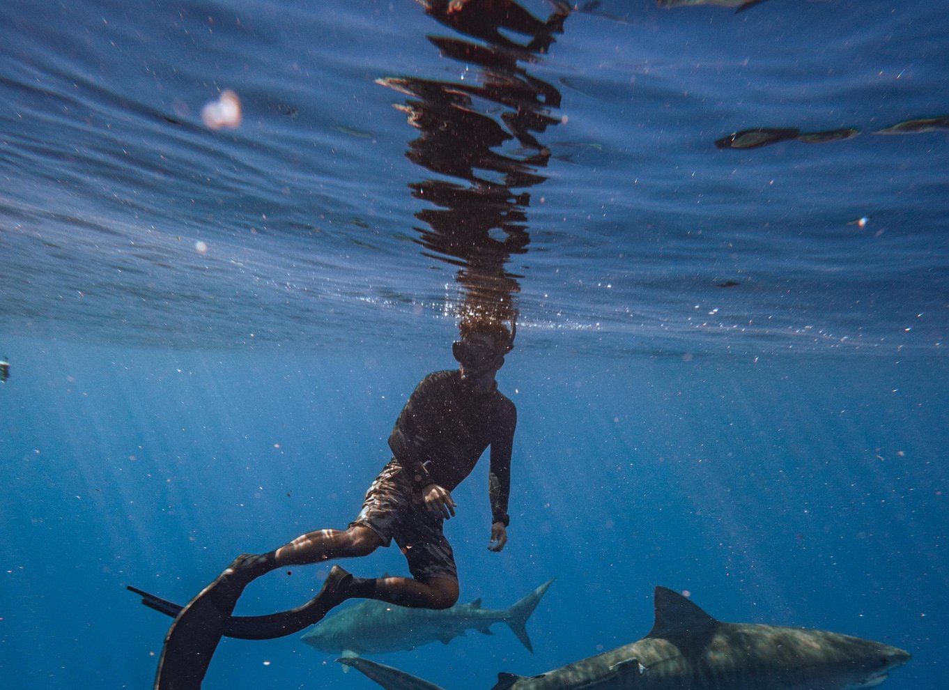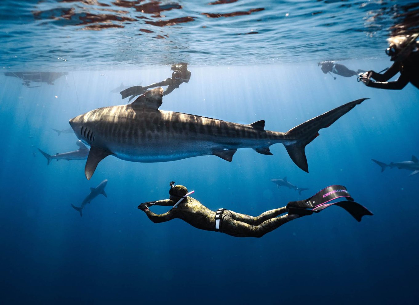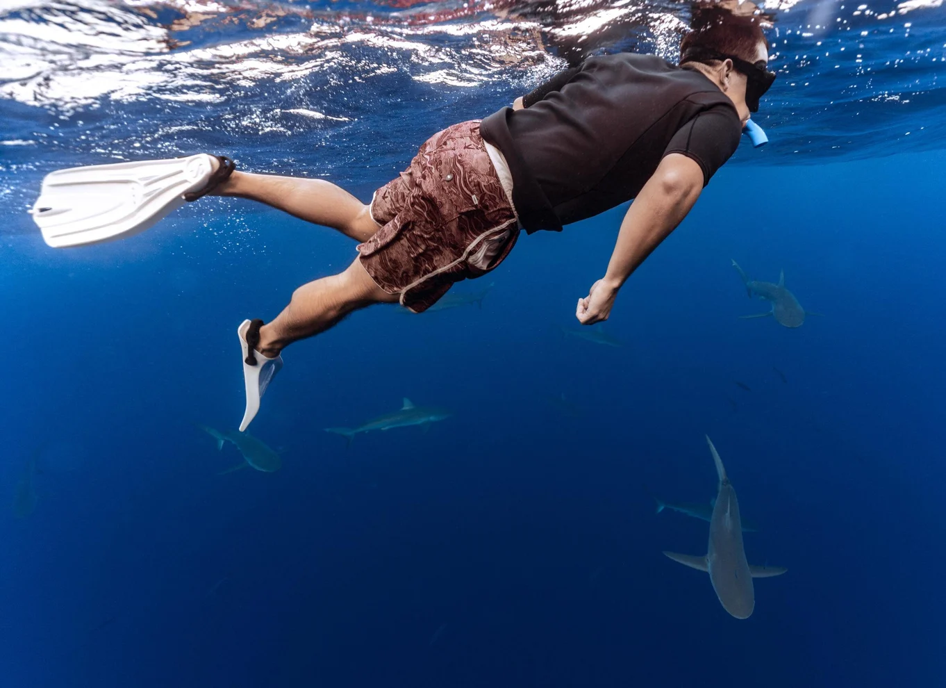 Embark on an exhilarating cageless shark diving adventure off the North Shore of Oahu. Swim alongside Hawaii's famous Manō, including Galapagos, Sandbar, and Tiger sharks.