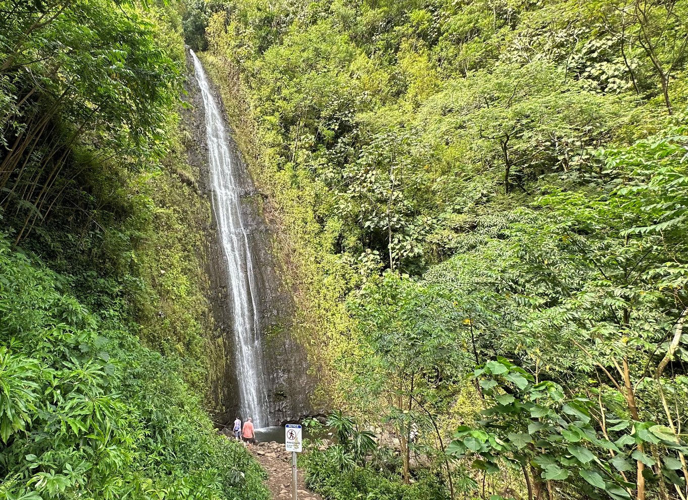 The trail is a picturesque rainforest trail that leads to Mānoa Falls and has appeared in several movies. It's considered easy, but the trail can be slippery when wet. The hike takes about 1-2 hours, depending on how muddy the trail is, how fit you are, and how long we linger at the waterfall.