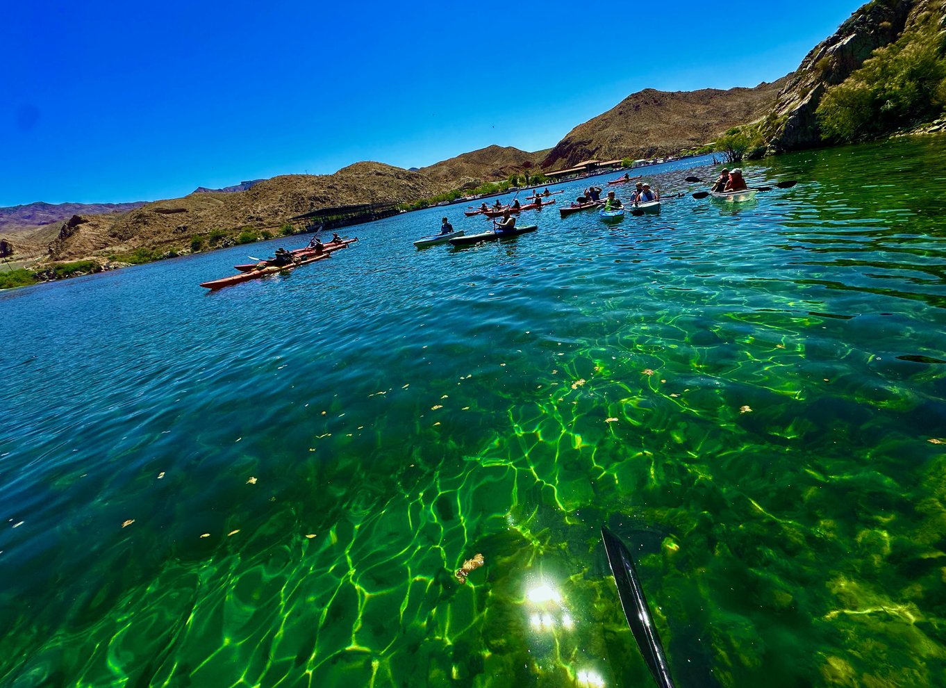 On our Full-Day Hoover Dam Hot Springs Kayak Tour, we guide you step by step as far back as you can safely hike to top of Boy Scout Canyon, Arizona Hot Springs and Goldstrike Slot Canyon for a true “best DAM day trip in the World.”