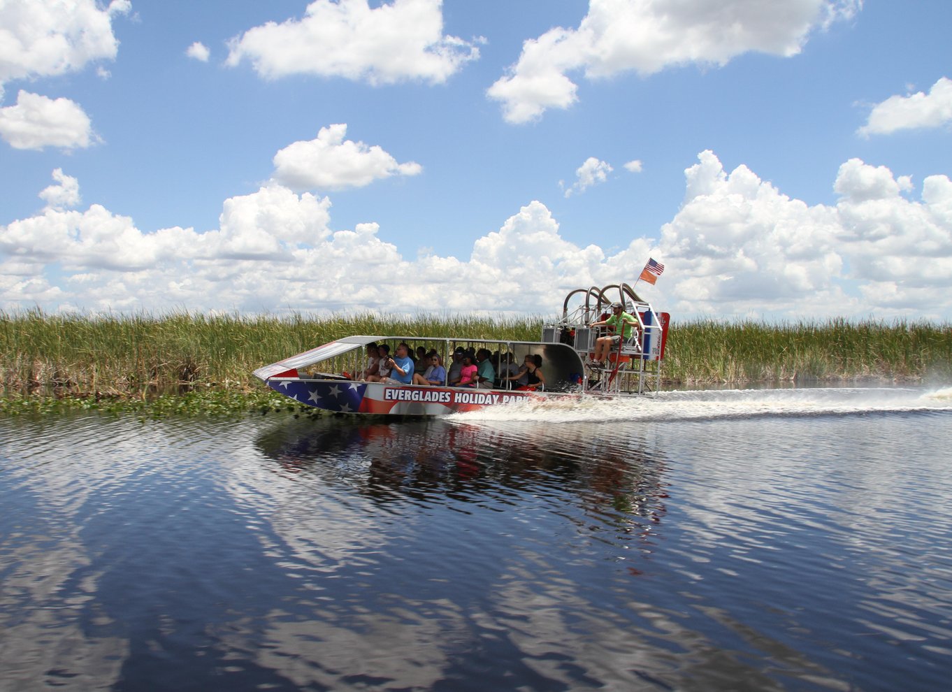 - 50-60 minutes flat propelled Airboat compared to the 30-40 minutes of the usual.