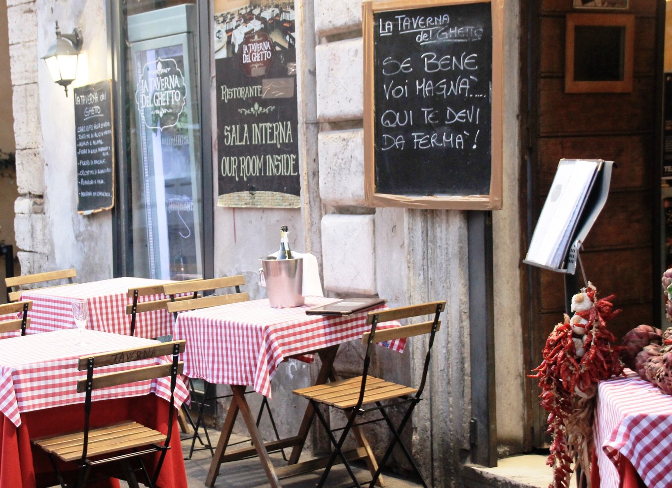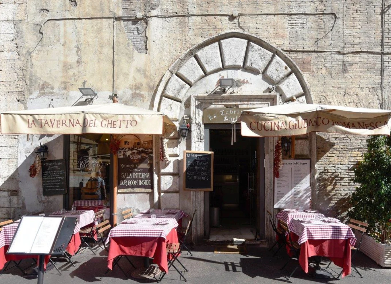 Immerse yourself in Roman culture surrounded by picturesque alleys and archaeological monuments in the old Jewish Quarter of Rome. Treat yourself to the culinary highlights of the 3-course lunch or of the 3-course dinner at La Taverna del Ghetto.