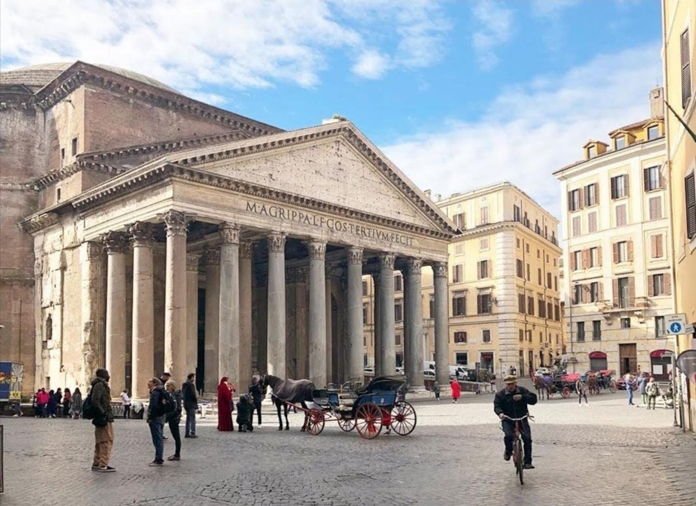 Piazza Navona, Pantheon, Temple of Hadrian in Piazza di Pietra: you will visit Piazza Navona, one of the most beautiful and lively in Rome, built above the Stadium of the Roman Emperor Domitian, famous since the early 1600s for its majestic baroque fountains, including Bernini's Fountain of the Four Rivers. You will then admire the legendary Pantheon, with its imposing open dome, an architectural masterpiece of antiquity. Finally, you will discover the Temple of Hadrian in Piazza di Pietra, with its imposing columns that tell the greatness of the emperor Hadrian in the heart of modern Rome.