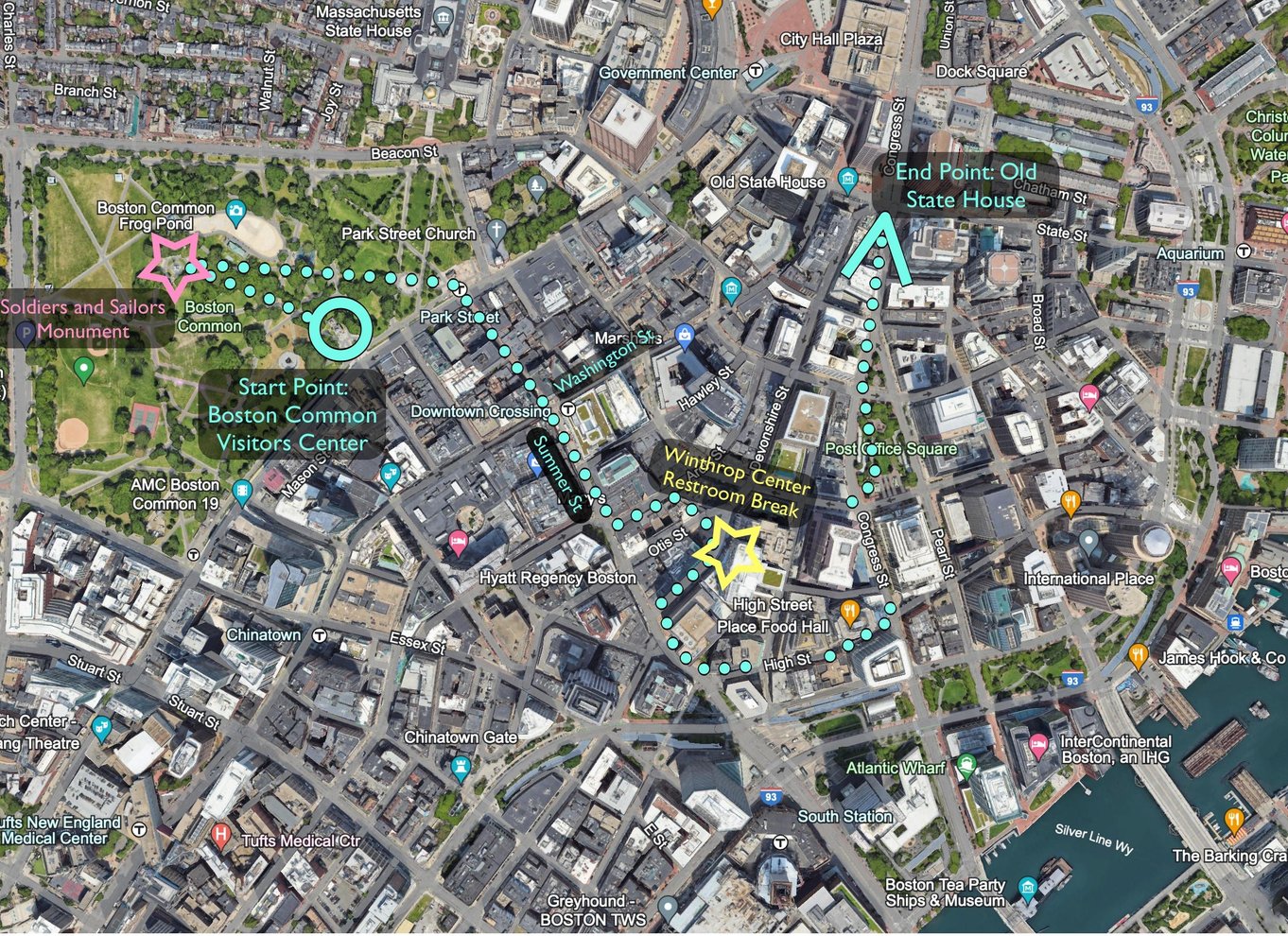 Auf halber Strecke der Tour machen wir eine ca. 10-minütige Pause am Winthrop Square. Dieser neu errichtete öffentliche Platz bietet viele Sitzgelegenheiten zum Ausruhen der Füße und saubere Toiletten. Dieses versteckte Juwel ist wahrscheinlich der fotogenste Ort in Boston und eignet sich perfekt für Fotos, die du mit Freunden und Familie teilen kannst.