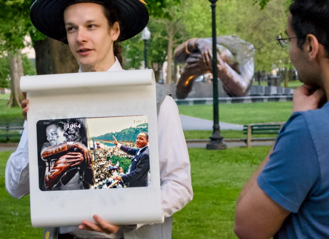 Unser erster Halt ist das Soldiers and Sailors Monument, das auf dem höchsten Hügel im Common steht! Hier zeigt dir dein Guide die ursprüngliche Landschaft Bostons und dramatische Fotos, die die riesigen Mülldeponien zeigen, durch die sich die Größe der Stadt verdoppelt hat. Während wir den Common verlassen, erfährst du, was die Inspiration für die Embrace-Skulptur war, eine Hommage an Dr. Martin Luther King Jr.