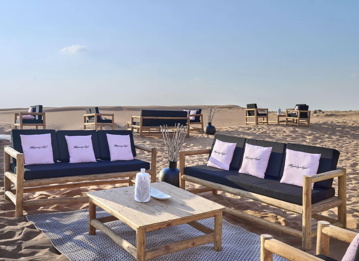 Der Nomad Garden: Premium-Wüstensafari & Beduinendinner von JW Marriott Marquis, mit Whispering Angel-Sonnenuntergang, Luxus-Lounge, Kamelritt, Falken- & Feuershow im Dubai Desert Conservation Reserve.