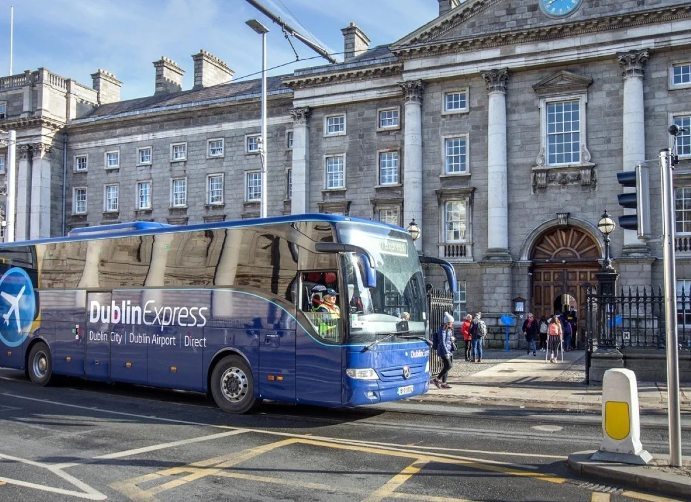 Mit einem komfortablen, modernen Bustransfer zwischen dem Flughafen Dublin T1 und dem Stadtzentrum von Dublin kannst du dir den Stress des Reisens sparen. Erspare dir vor oder nach einer langen Reise das lästige Navigieren durch das öffentliche Verkehrssystem. Lehn dich zurück und entspann dich, während du dich in die sicheren Hände deines Busfahrers begibst.