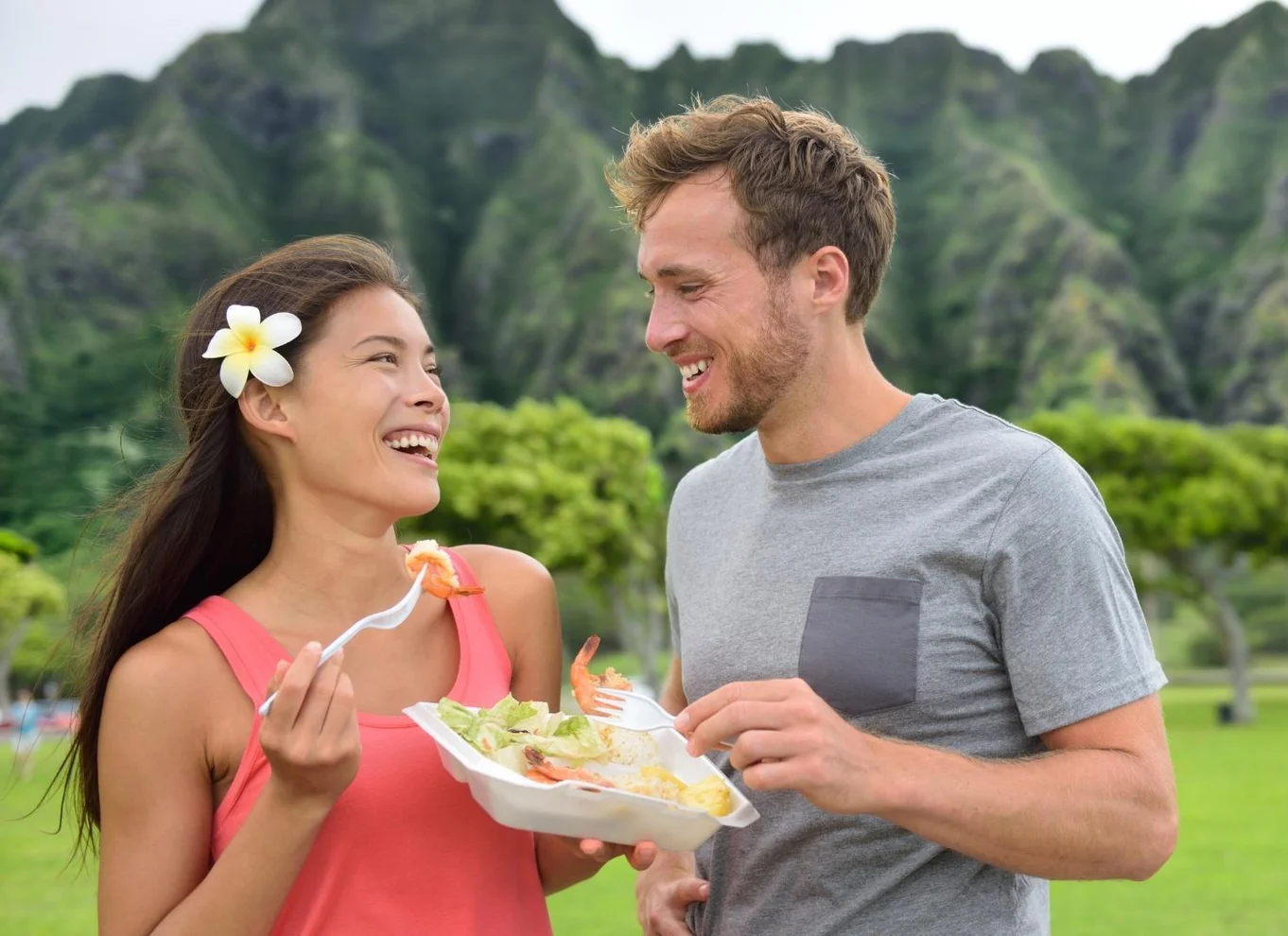 - Mittagessen (nicht im Preis der Tour inbegriffen) z.B. bei den lokalen Food Trucks in Kahuku - Vielfalt an frisch zubereitetem hawaiianischem Essen, koreanisches BBQ, Poke Bowls, Vegetarisches, North Shore Shrimps und mehr
