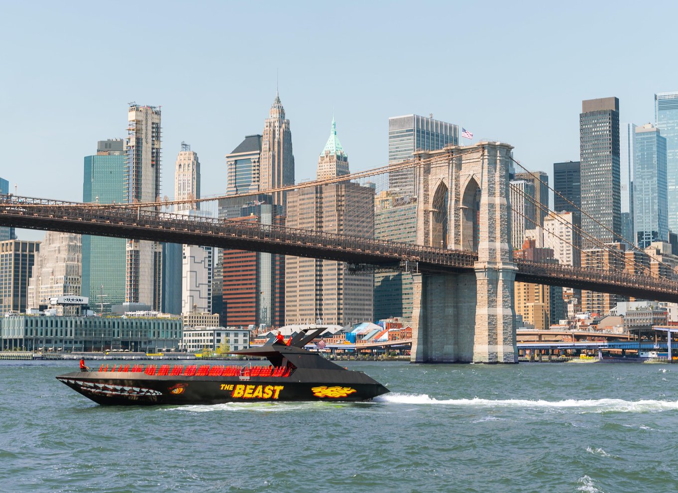 Erlebe den New York Harbor in The Beast, einem 21 Meter langen, speziell angefertigten, jetbetriebenen Offshore-Rennboot, das vor Energie nur so strotzt und alle anderen hinter sich lässt! Dein Kapitän bringt dich auf eine Geschwindigkeit von bis zu 72 km/h und nimmt dich mit auf eine aufregende Fahrt zur Freiheitsstatue. Du kannst zwischen Abfahrtsorten in Downtown oder Midtown wählen.