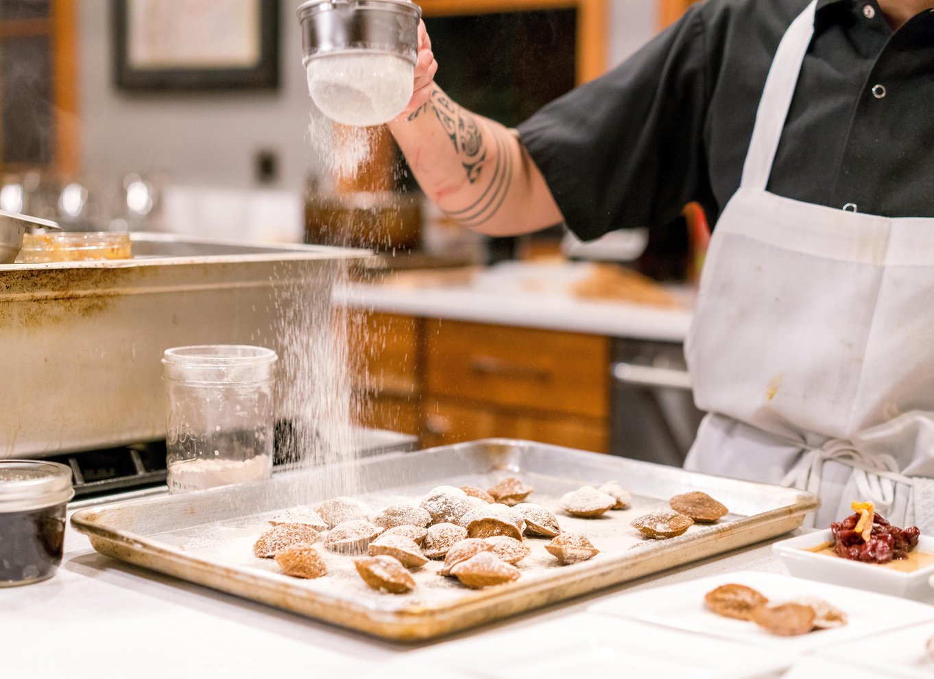 - Genieße 9 Kostproben, darunter französisches Gebäck und süße Snacks