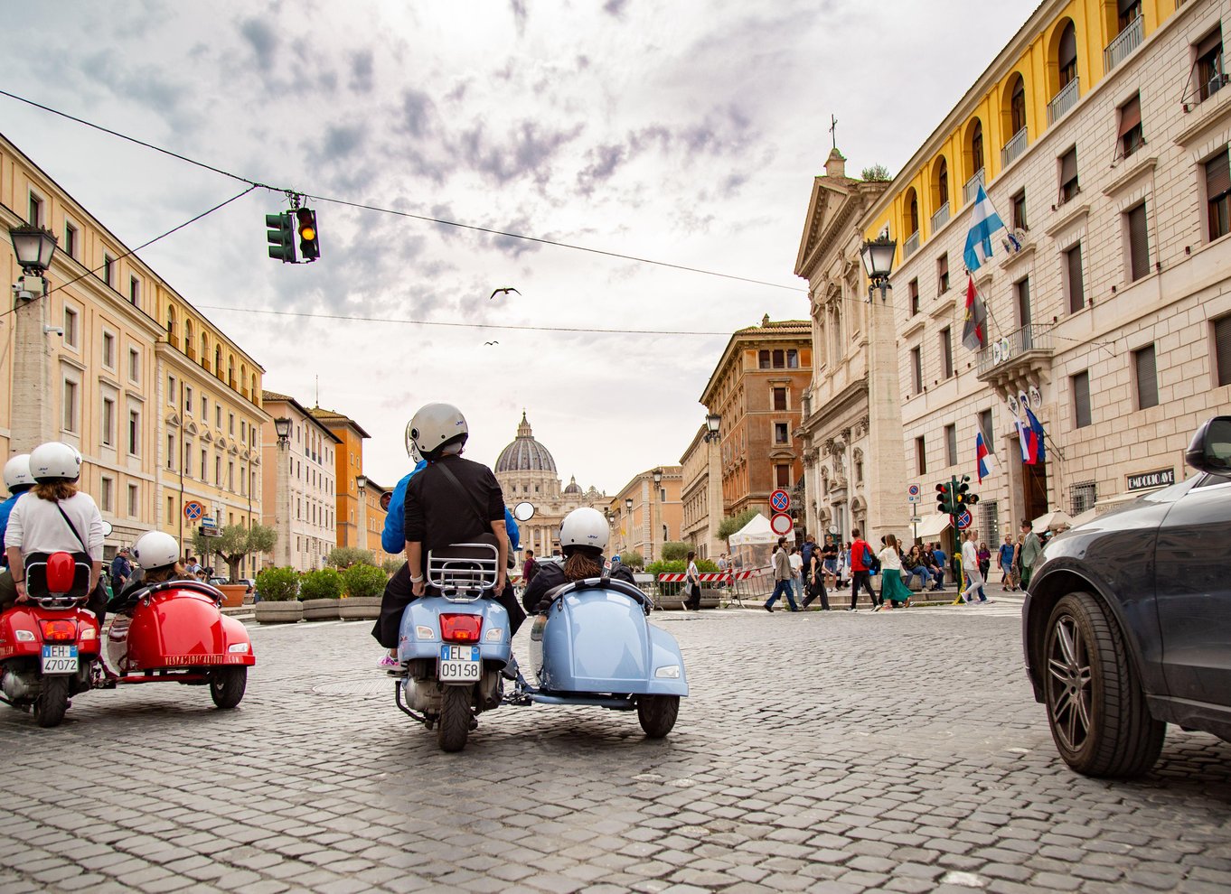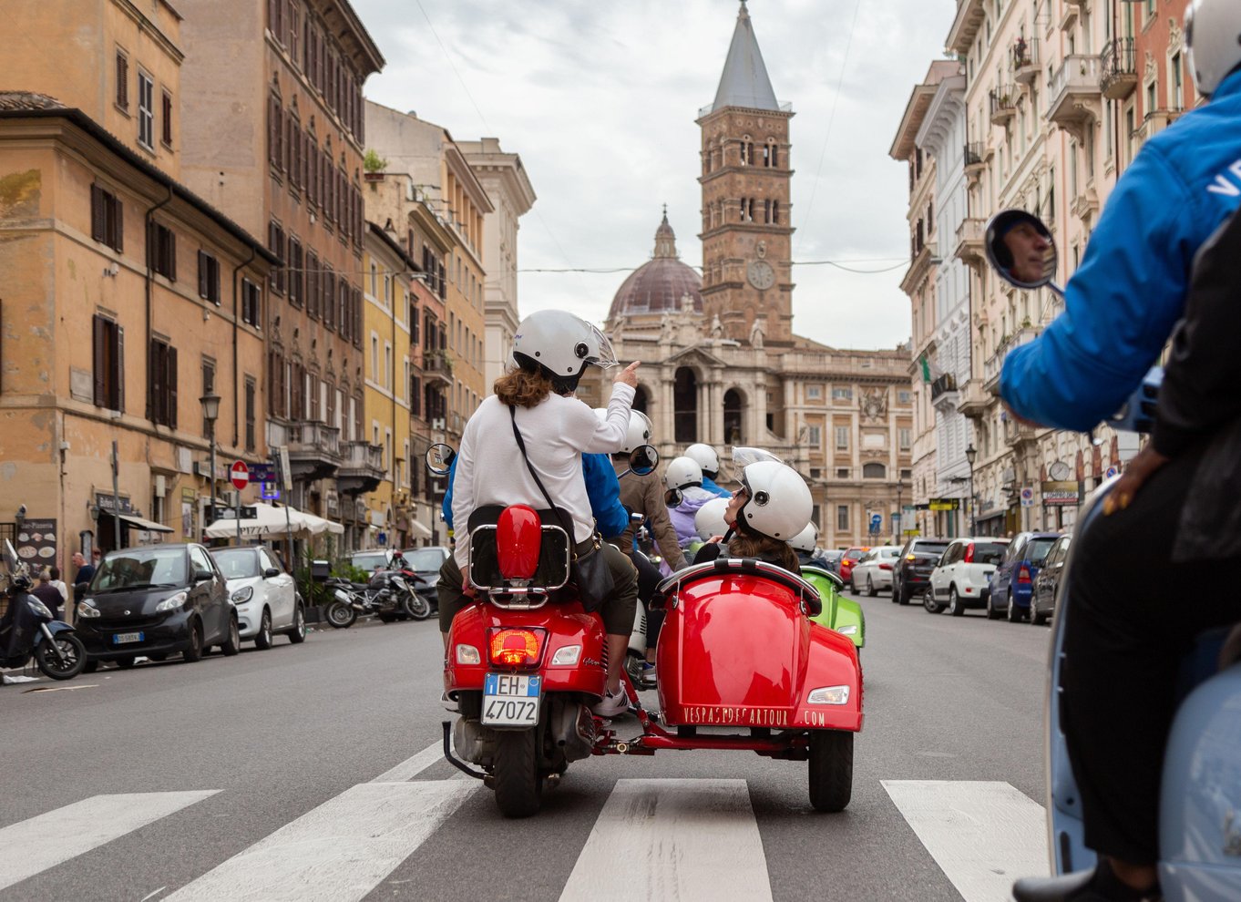Entdecke die Highlights der Ewigen Stadt von einem Vespa-Beiwagen aus.