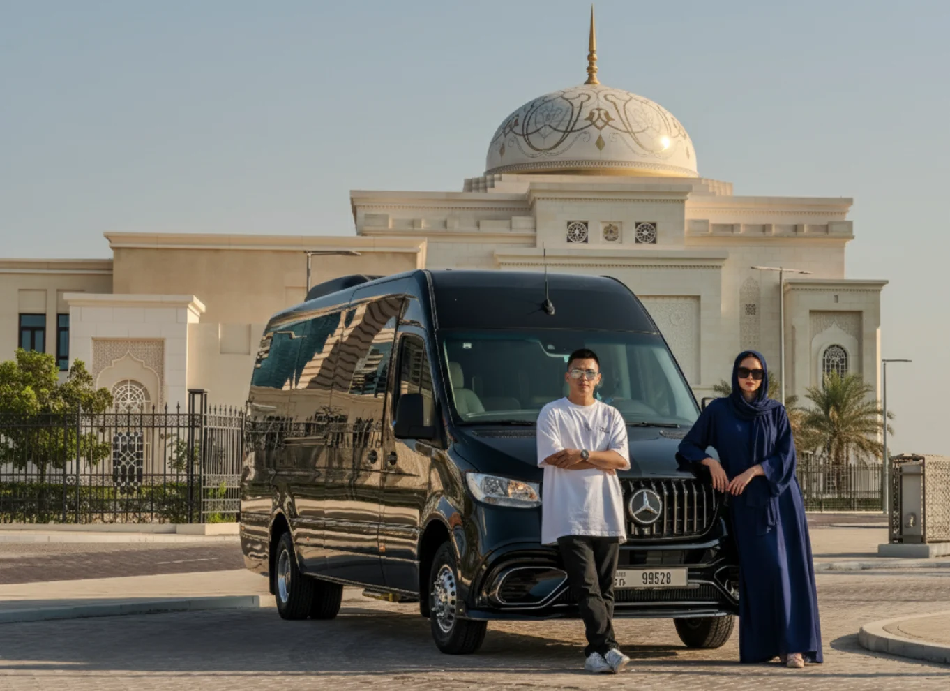Disfruta de Abu Dabi en un grupo pequeño con un tour de un día completo en una Mercedes Sprinter de lujo desde Dubái. Después de recogerte, disfruta de unos cómodos asientos y de la cálida bienvenida de tu guía, que incluye dátiles árabes tradicionales procedentes de diferentes países, mientras recorres el golfo Pérsico. Durante el viaje, tu guía te contará cosas sobre una de las ciudades más ricas del mundo.