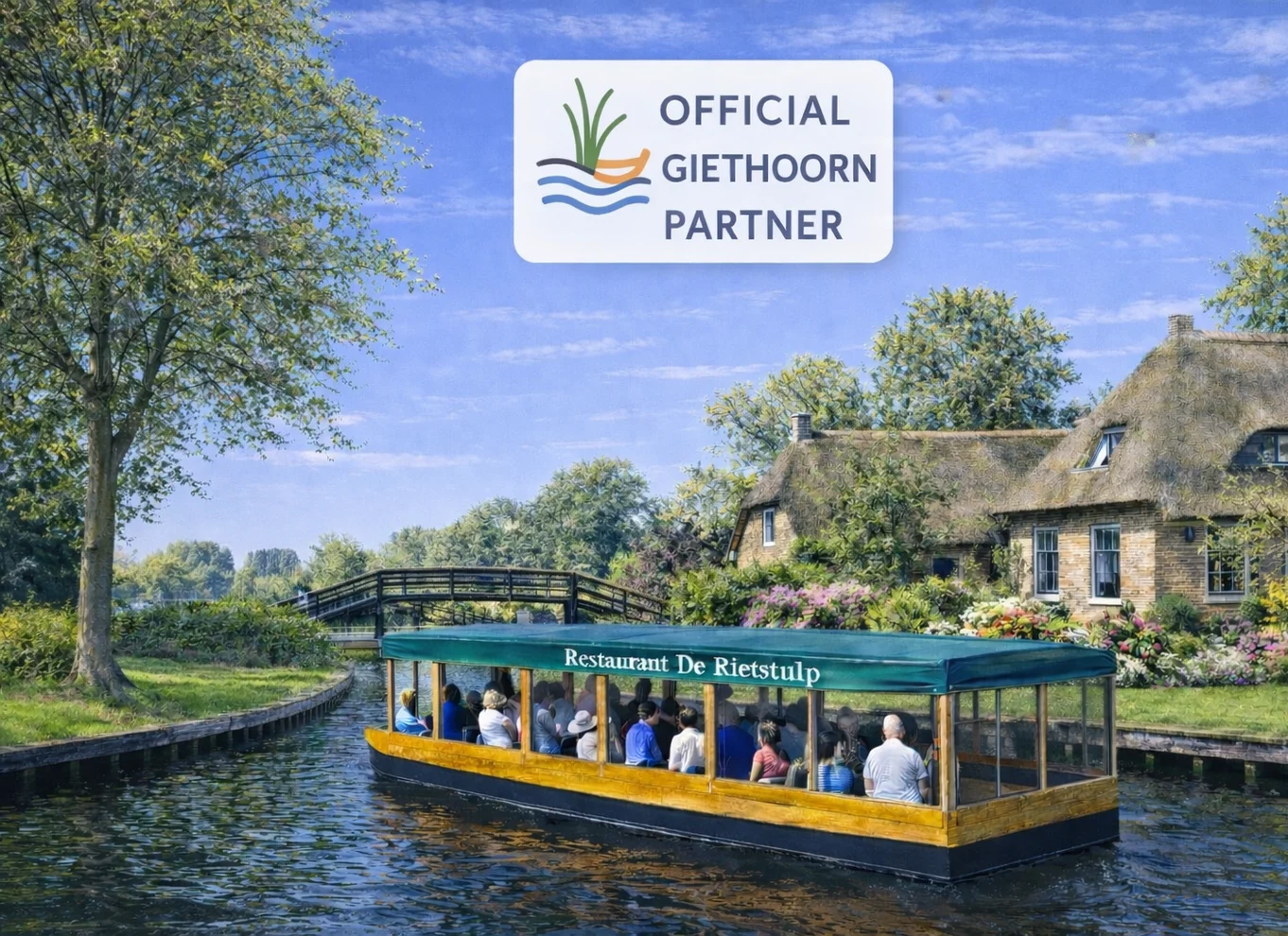 - Almuerzo en De Rietstulp (socio local), no incluido; los huéspedes tienen un 10 % de descuento. De Rietstulp fue nombrado el mejor restaurante de Giethoorn en 2025.