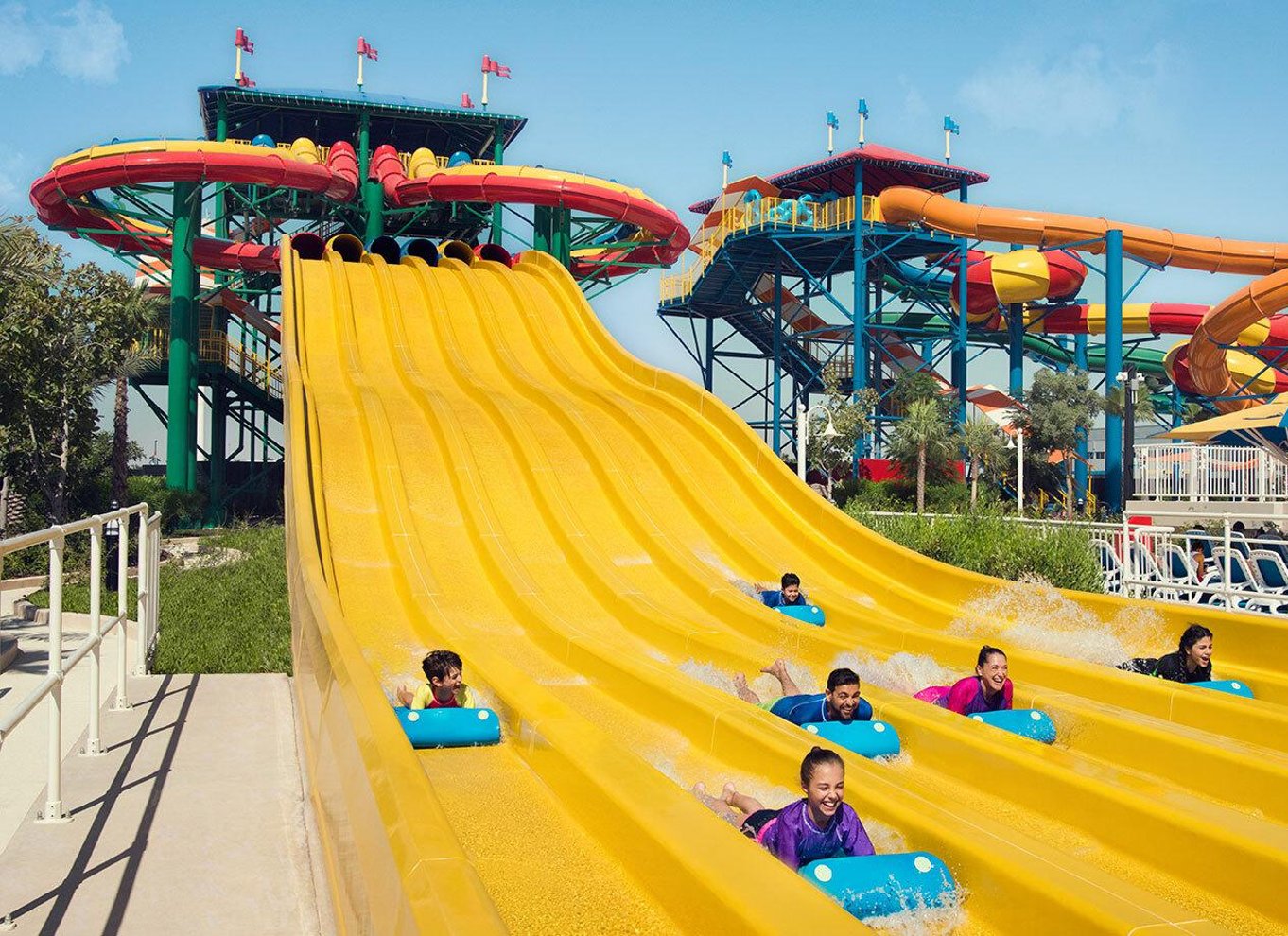 - Disfruta de más de 20 toboganes de agua en este parque familiar.