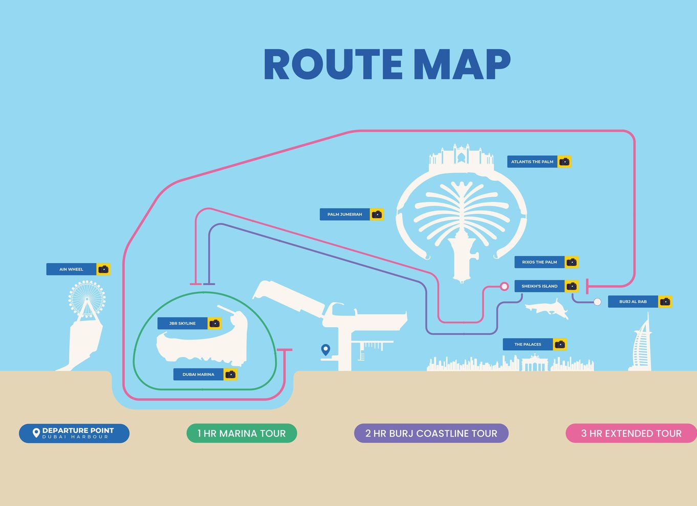 - Haz fotos de cerca de los monumentos más emblemáticos de Dubai a medida que avanzas
