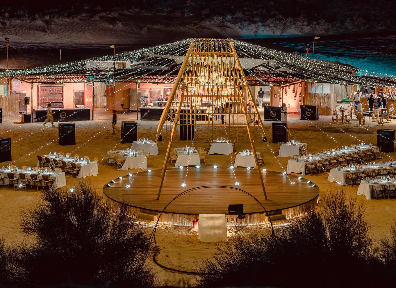 Comienza la velada con un tranquilo recorrido por el desierto desde la puerta hasta el campamento. Llega al Sonara Camp, donde se encuentra un restaurante único enclavado en el corazón del desierto árabe. Disfruta de la puesta de sol en el desierto desde el salón, seguido de una exquisita cena en un lujoso restaurante en el desierto, mientras contemplas increíbles actuaciones en directo y el espectáculo de fuego característico de Sonara.