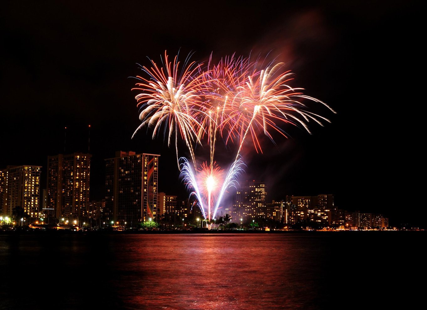 Especial de Año Nuevo con fuegos artificiales en Waikiki