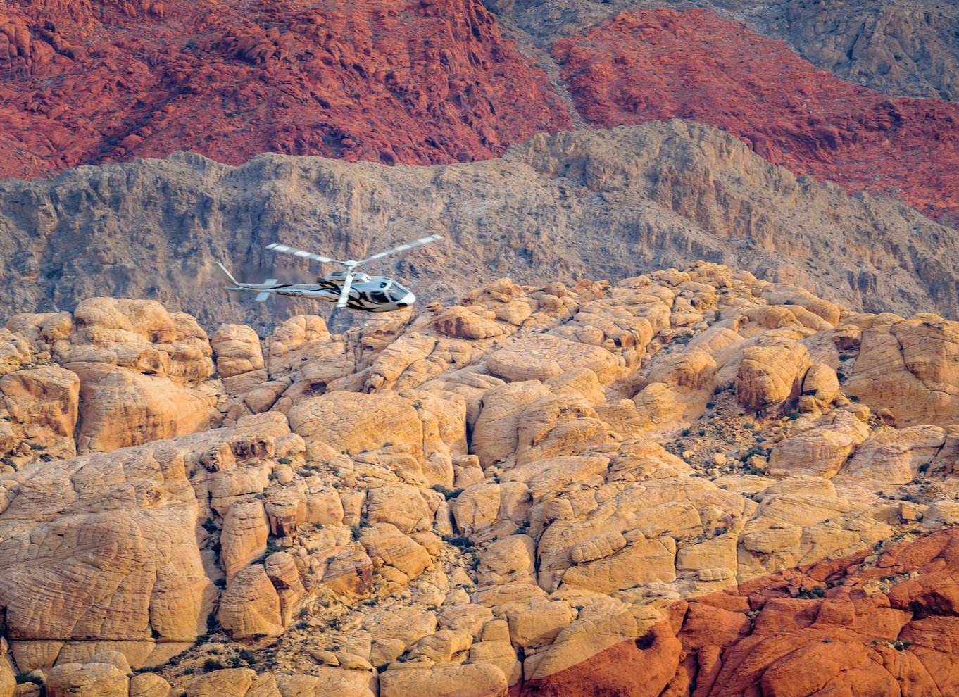Escucha de tu piloto historias fascinantes sobre la historia de Las Vegas y la geología del Parque Estatal del Cañón de Red Rock. Mientras asciendes por el cielo, contempla las impresionantes vistas de Las Vegas antes de dirigirte hacia el impresionante Red Rock Canyon, uno de los favoritos de la zona.