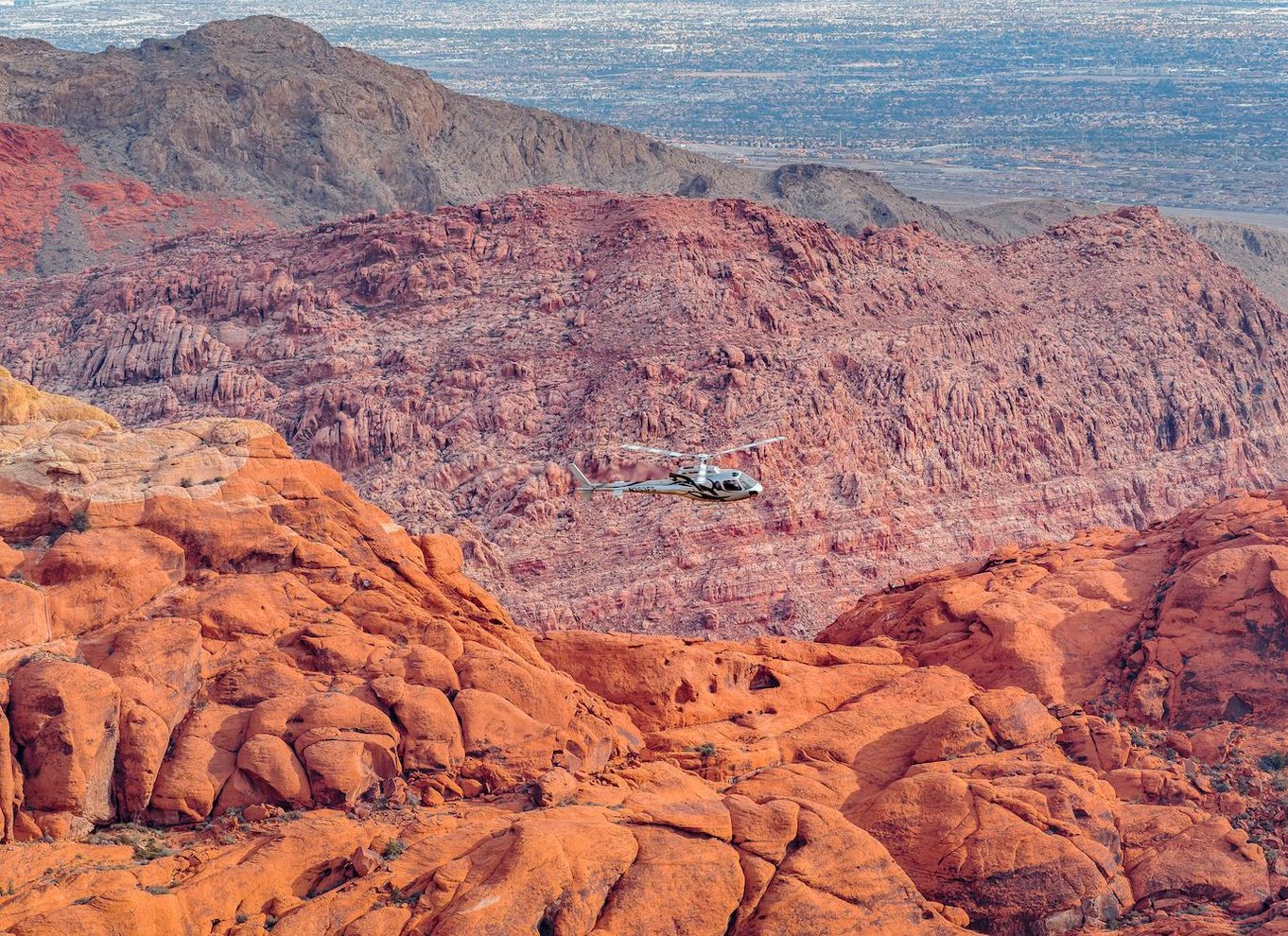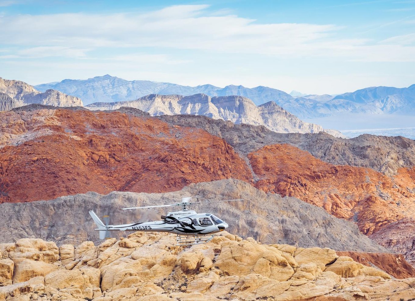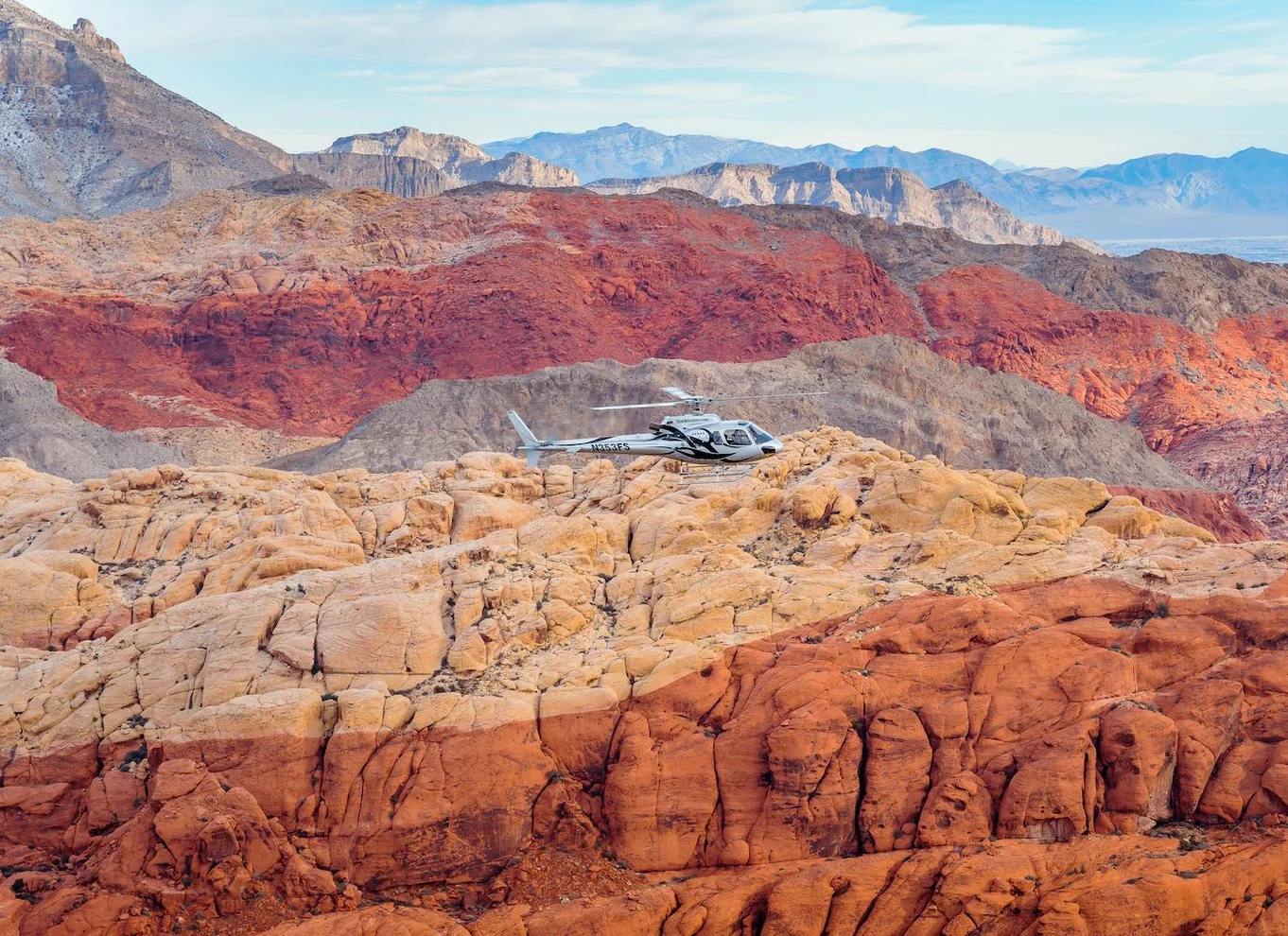 Experimenta un emocionante vuelo en helicóptero sobre Las Vegas, y luego remonta el vuelo hacia la impresionante cordillera Red Rock Canyon para vivir una aventura memorable por encima de impresionantes paisajes y vistas de la ciudad.