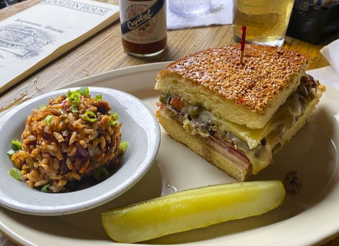 - Beignet (un clásico de Nueva Orleans), un plato local, un po'boy o una muffuletta, una taza de gumbo y un dulce local