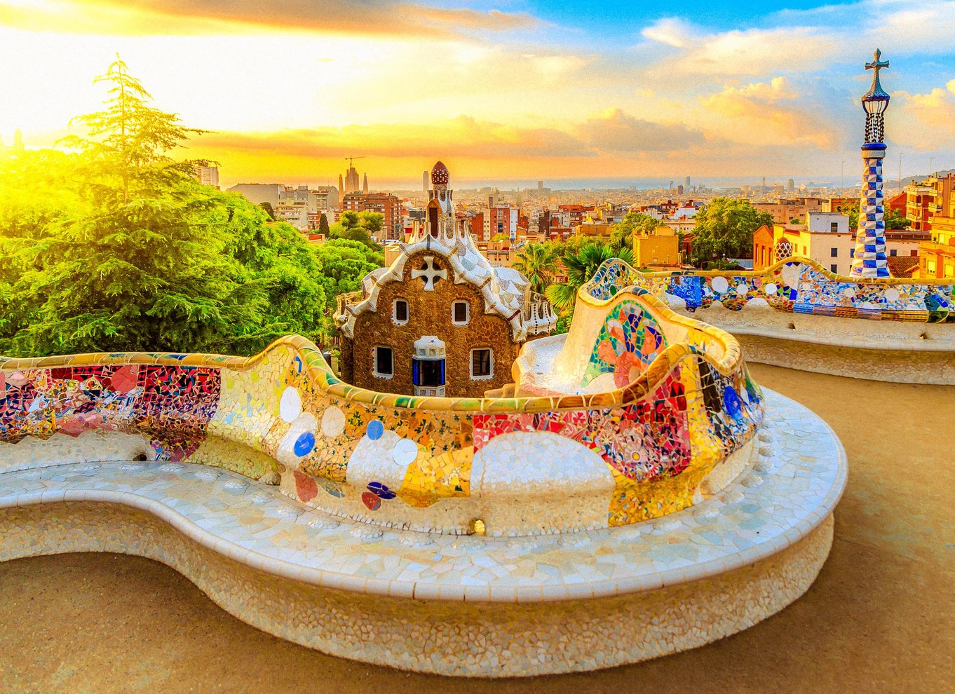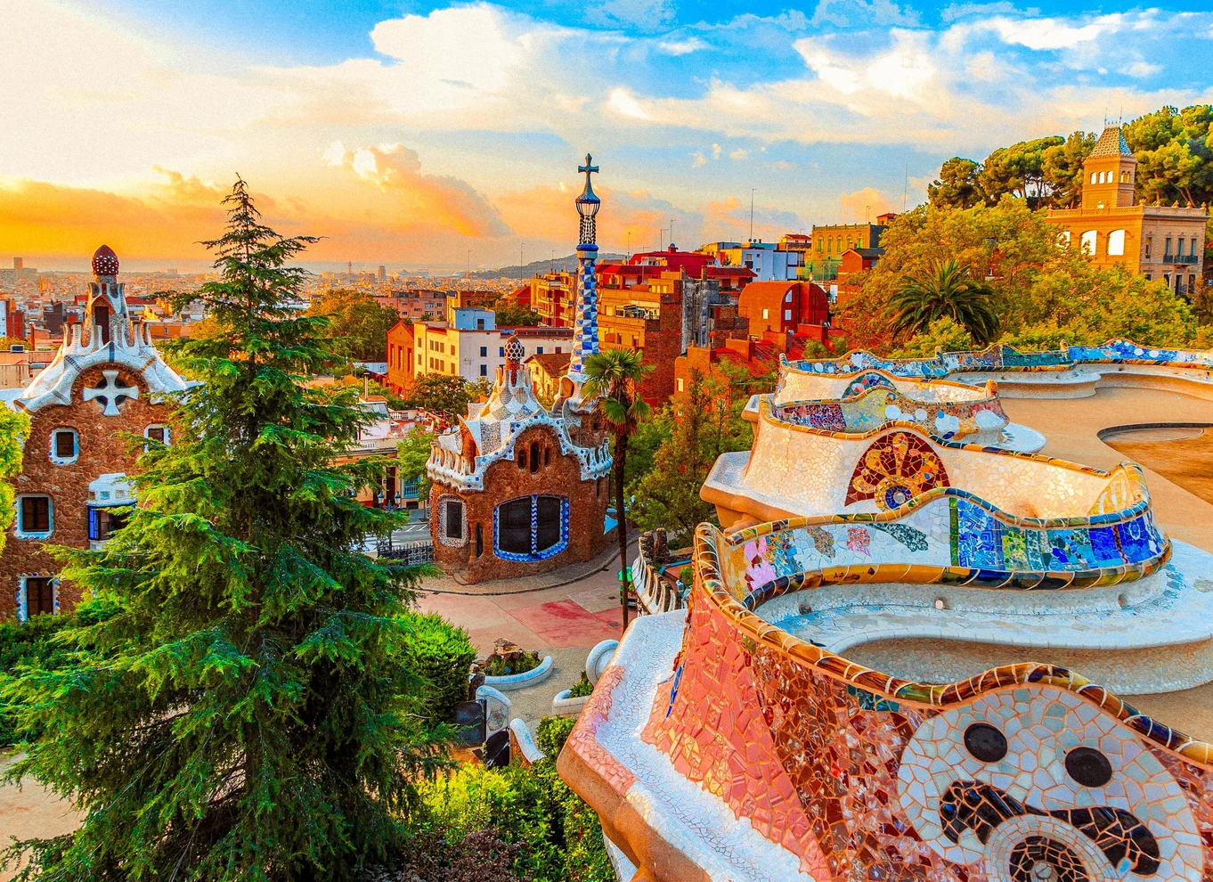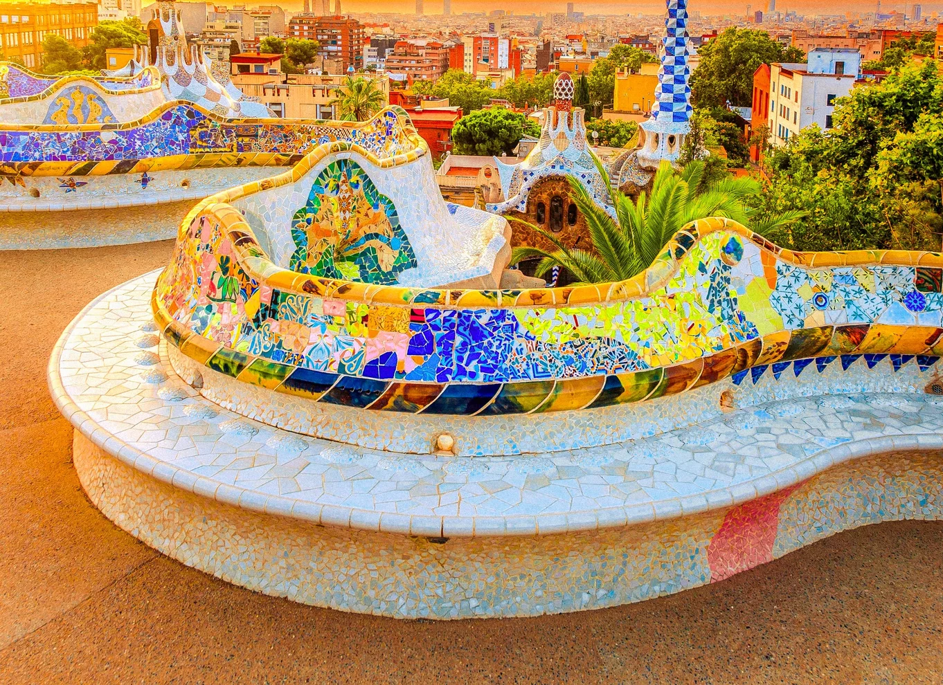- Admirez les mosaïques complexes de Trencadis, composées de fragments de céramique colorés.