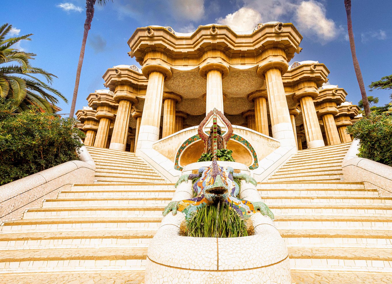 - Montez le vibrant escalier du dragon pour rencontrer El Drac, la salamandre emblématique de Gaudí.