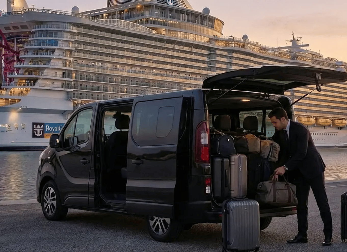 Prise en charge directe au navire : En tant que fournisseur de services agréé, nous disposons des autorisations officielles nécessaires pour entrer dans la zone portuaire. Ainsi, votre chauffeur viendra vous chercher directement au pied de votre bateau de croisière, ce qui vous évitera d’avoir à prendre des navettes portuaires bondées avec vos bagages.