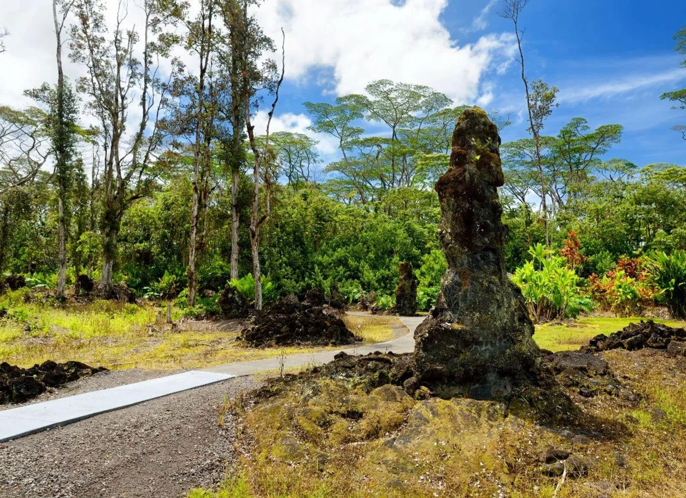- Découvrez la beauté étrange des troncs d'arbres modelés par la lave dans une forêt volcanique.