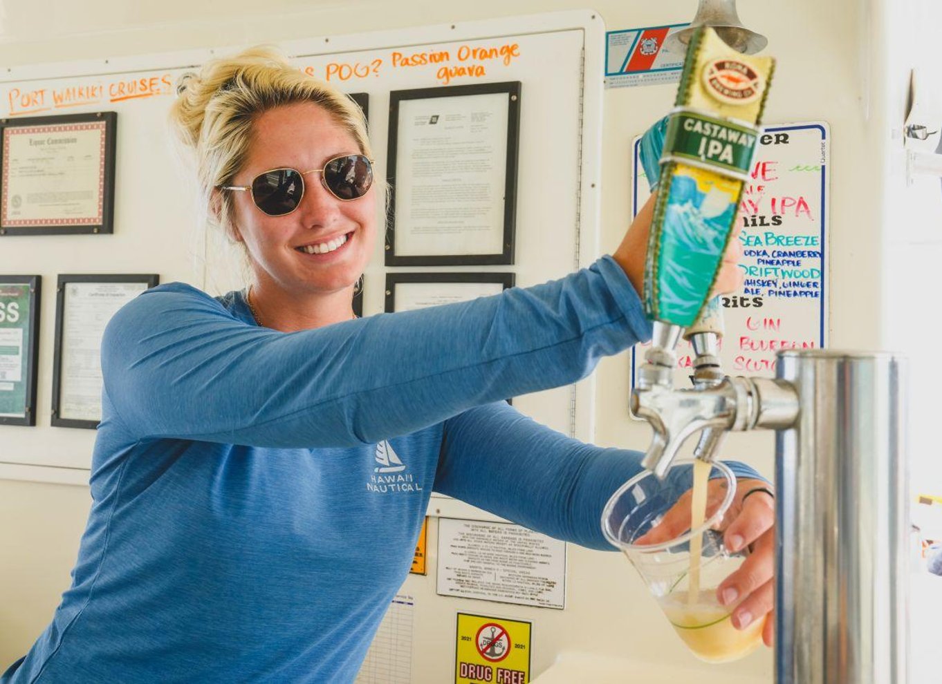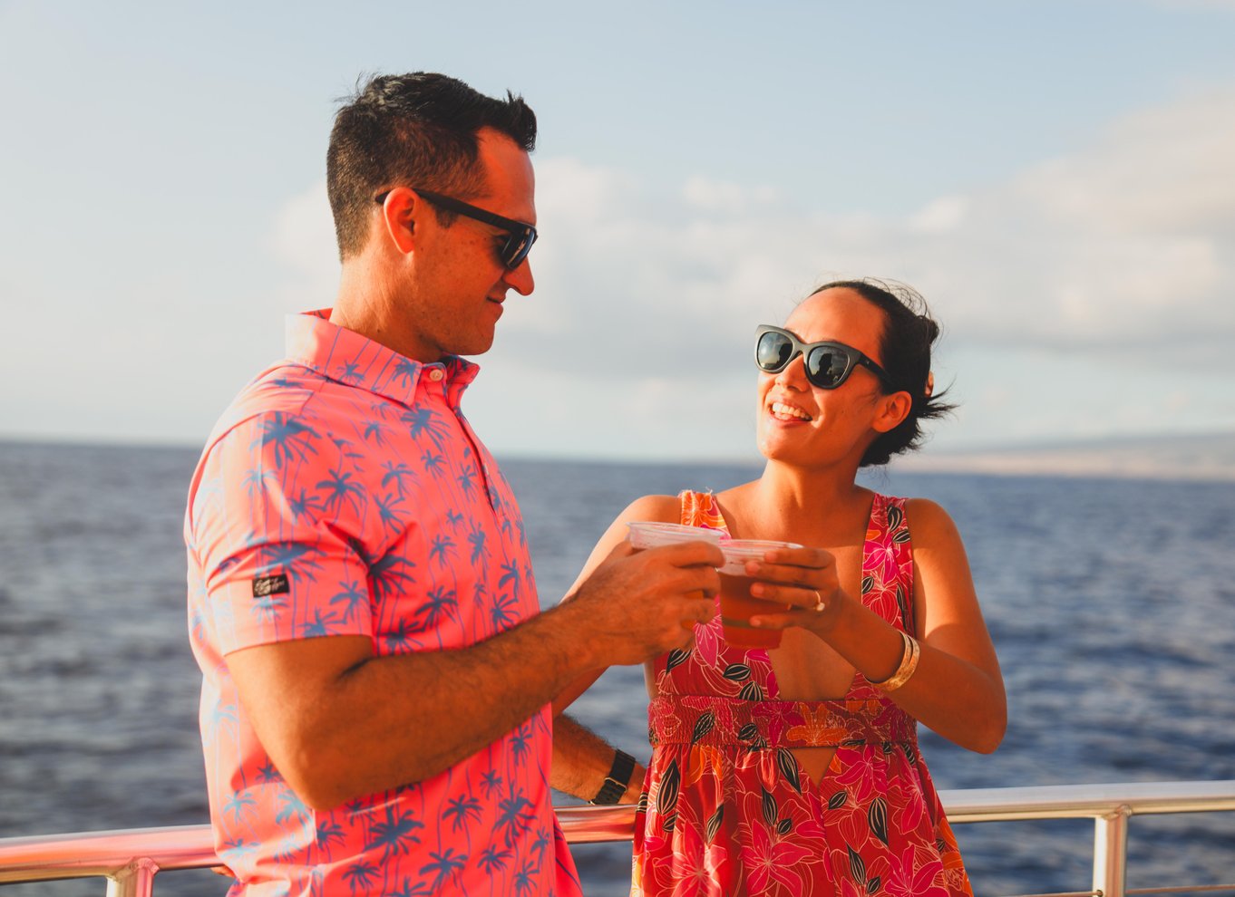 Détendez-vous en sirotant des cocktails tropicaux, de la bière, du vin et en dégustant des en-cas légers, tandis que la lumière dorée du soleil se dissipe sur l'eau et que le ciel de l'île se transforme en une toile de couleur. Que vous célébriez une occasion spéciale ou que vous profitiez simplement du moment, cette croisière en soirée capture la magie du coucher de soleil d'Hawaï dans le plus pur style insulaire.