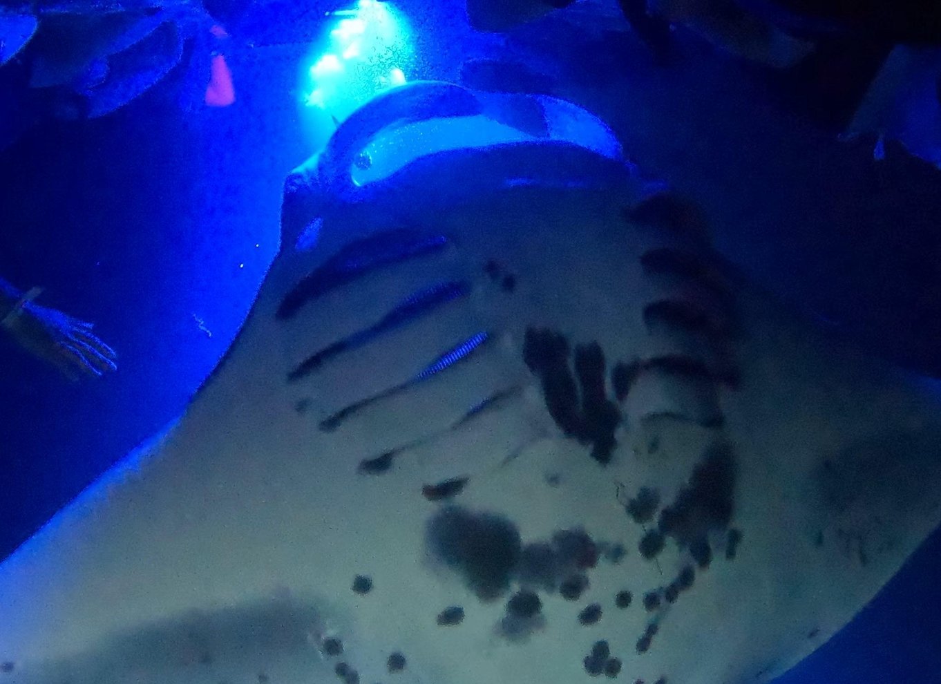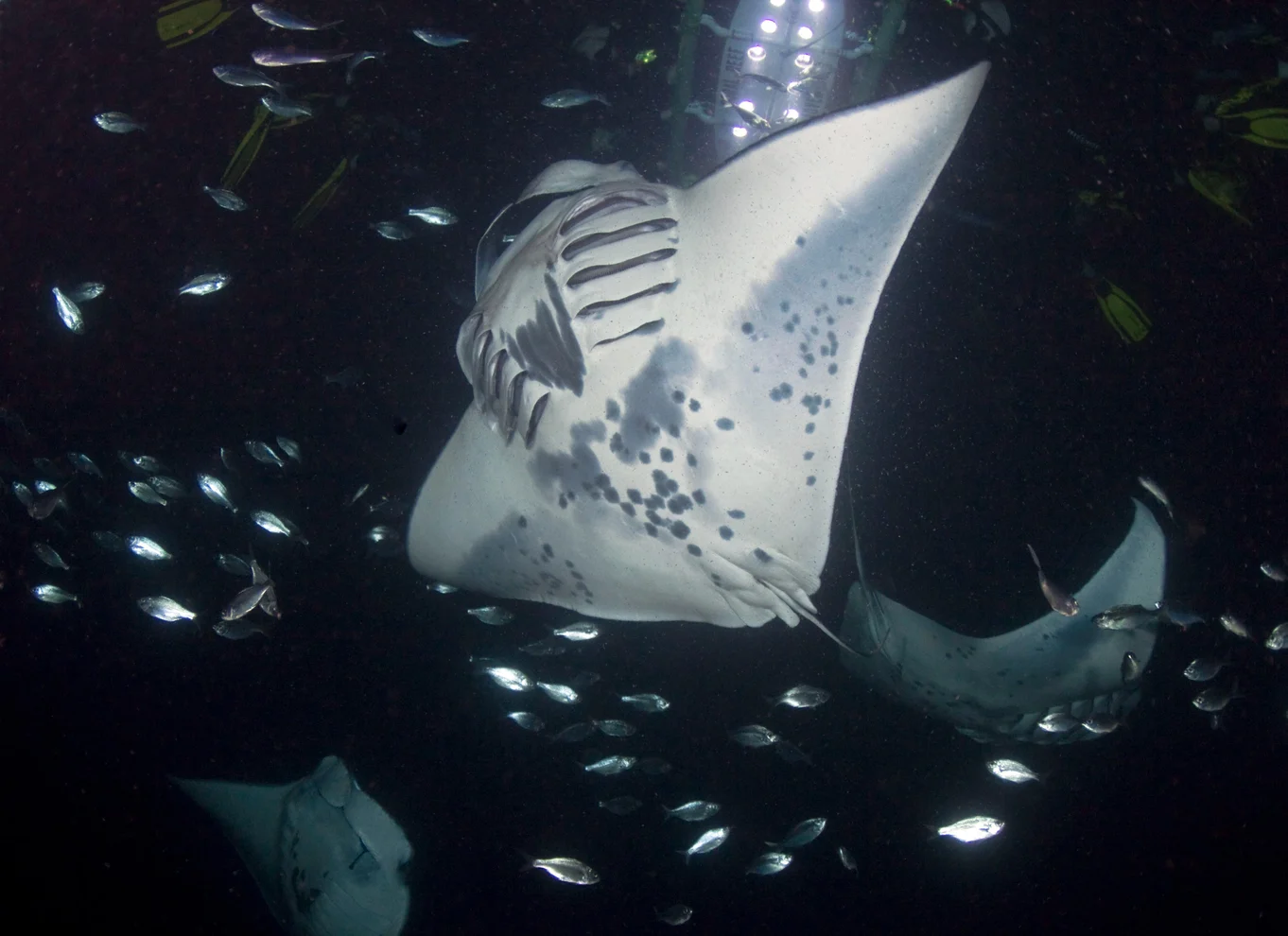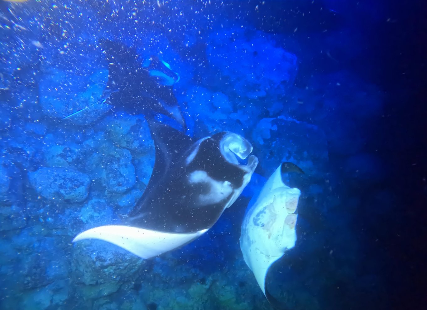 - Flottez en apesanteur tandis que les raies manta glissent avec élégance dans l'obscurité en dessous de vous.