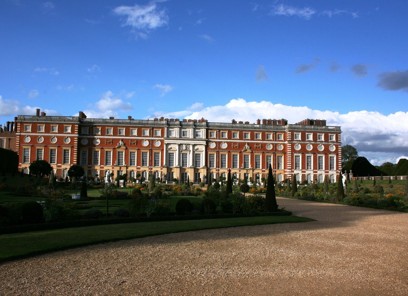 Le palais de Hampton Court est l'histoire de deux palais : un palais Tudor magnifiquement aménagé par le cardinal Wolsey, puis par Henri VIII, et un palais baroque construit par Guillaume III et Marie II.