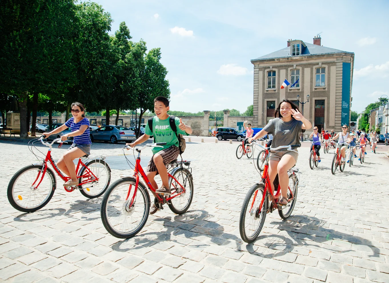 - Promenez-vous dans le parc bordé d'arbres avec votre guide expérimenté.
