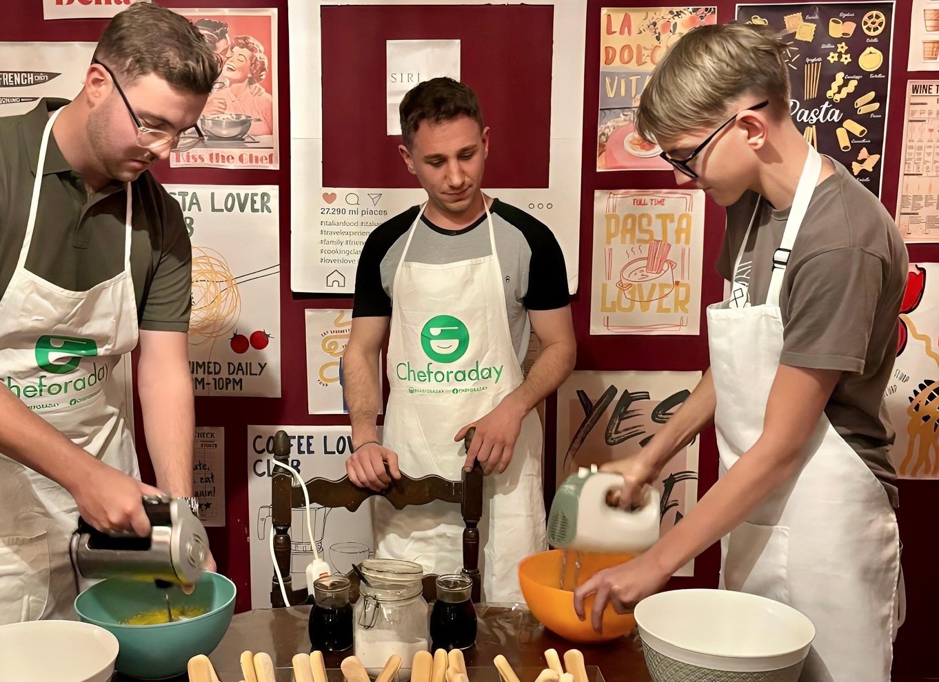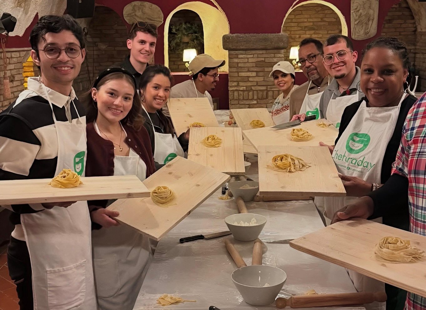Rejoignez CHEFORADAY pour une expérience culinaire italienne à quelques pas de l'emblématique Place d'Espagne ! Sous la direction d'un expert, vous apprendrez à transformer un simple œuf et une poignée de farine en de parfaites fettuccine en utilisant uniquement vos mains. Avec des ingrédients frais, de l'amour et une passion pour la bonne cuisine, vous découvrirez également l'histoire de certains des plats les plus célèbres d'Italie. Plongez dans la tradition à l'intérieur de l'un de nos restaurants climatisés, où des peintures murales originales du XIXe siècle vous transporteront dans le passé. Maîtrisez l'art de préparer un authentique tiramisu pour impressionner vos amis et votre famille. Rencontrez de nouvelles personnes, amusez-vous et profitez d'un délicieux repas et d'un dessert entièrement préparé par vos soins, accompagné d'un verre de vin. Terminez votre expérience par un limoncello rafraîchissant et emportez un certificat de récompense en souvenir de votre séjour inoubliable parmi nous !