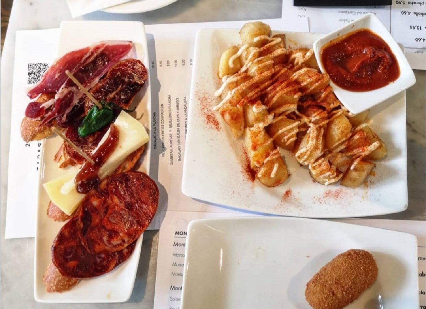 • Pan con tomate – Finom tapas friss paradicsommal, kenyérszeleteken. Egyszerű, de a helyiek kedvence.