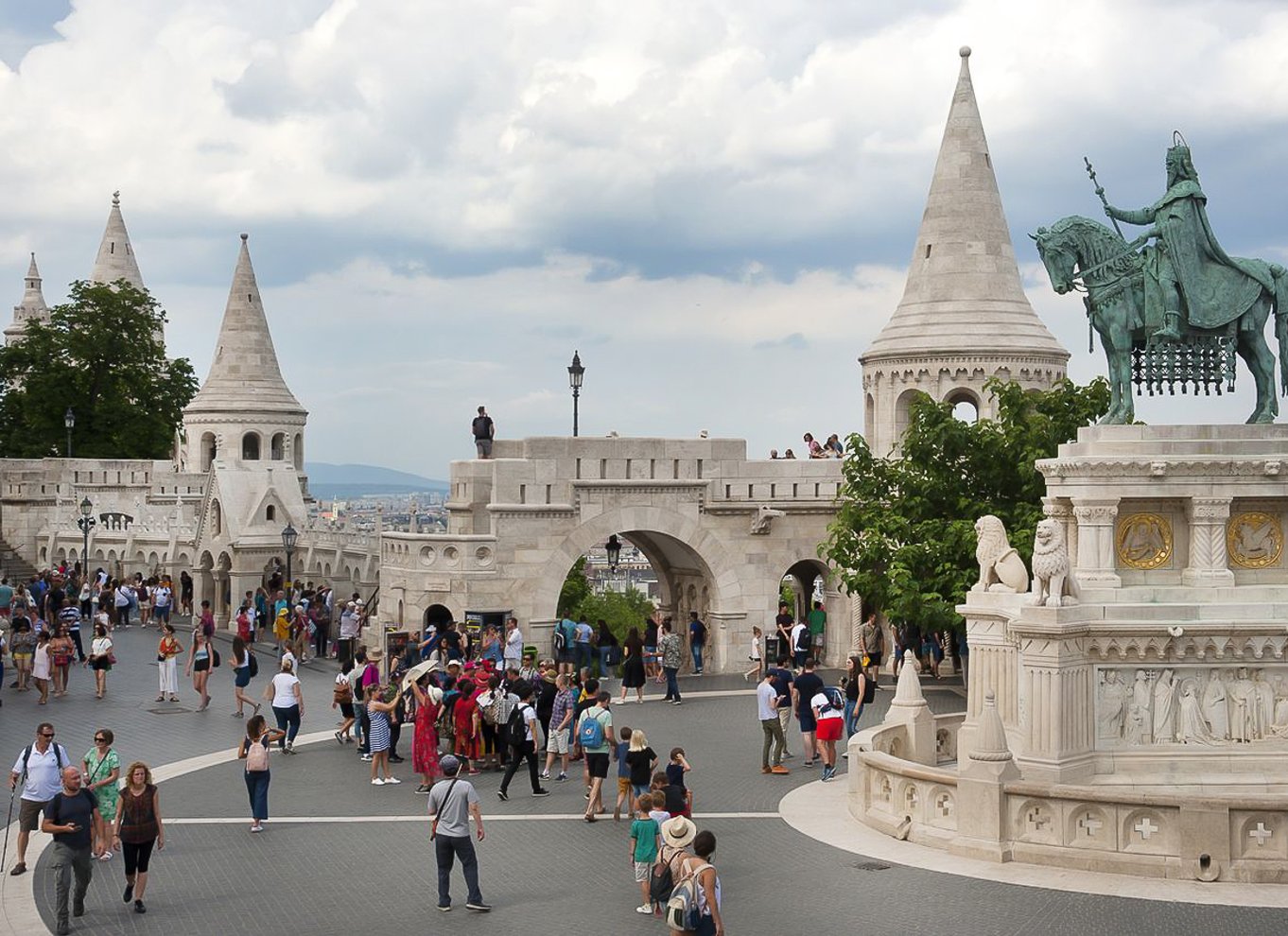 Fedezze fel a vár másik oldalát. A középkori falakról kiváló kilátás nyílik a Budai-hegységre - a város nyugati részére, erdőkkel és természetvédelmi parkokkal. Túráját a kiindulási ponton, a Szentháromság-szobornál, a Mátyás-templom előtt fejezze be.