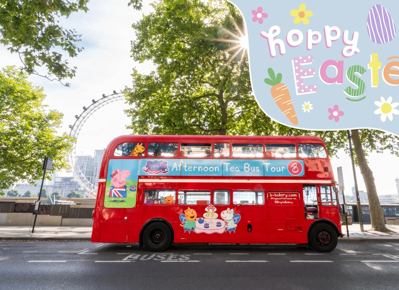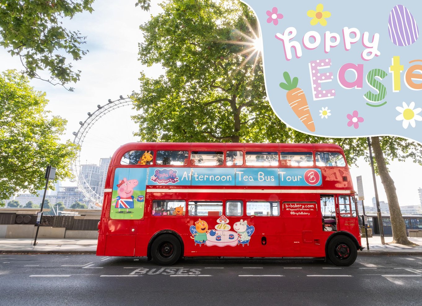 Élvezd a legjobb kilátást London központjára egy emeletes Routemaster buszon, miközben egy Peppa Pig témájú délutáni teát iszik. Hallgasd meg a Peppa malac hangos idegenvezetését, amely tele van szórakoztató játékokkal és együtt énekelhető dalokkal, amelyeket az egész család imádni fog.