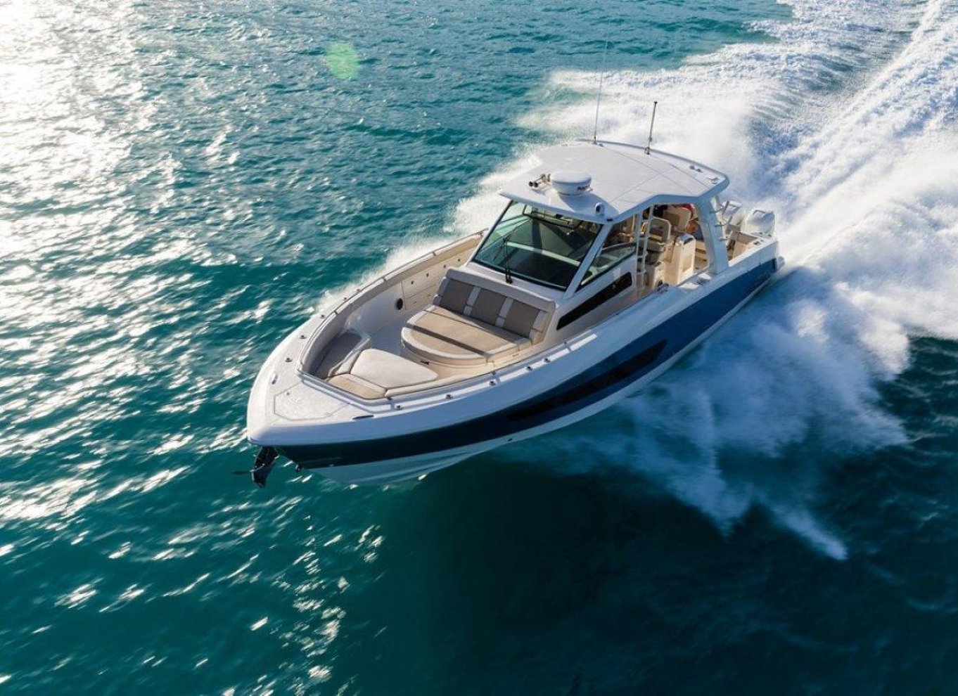 Pihenj a tágas orrnyugáson vagy az árnyékos ülőhelyeken, miközben könnyű harapnivalókat és a kedvenc italodat élvezed. A SeaKeeper® stabilizátor biztosítja a zökkenőmentes utazást, a légkondicionált kabin pedig hűsítő menedéket nyújt.