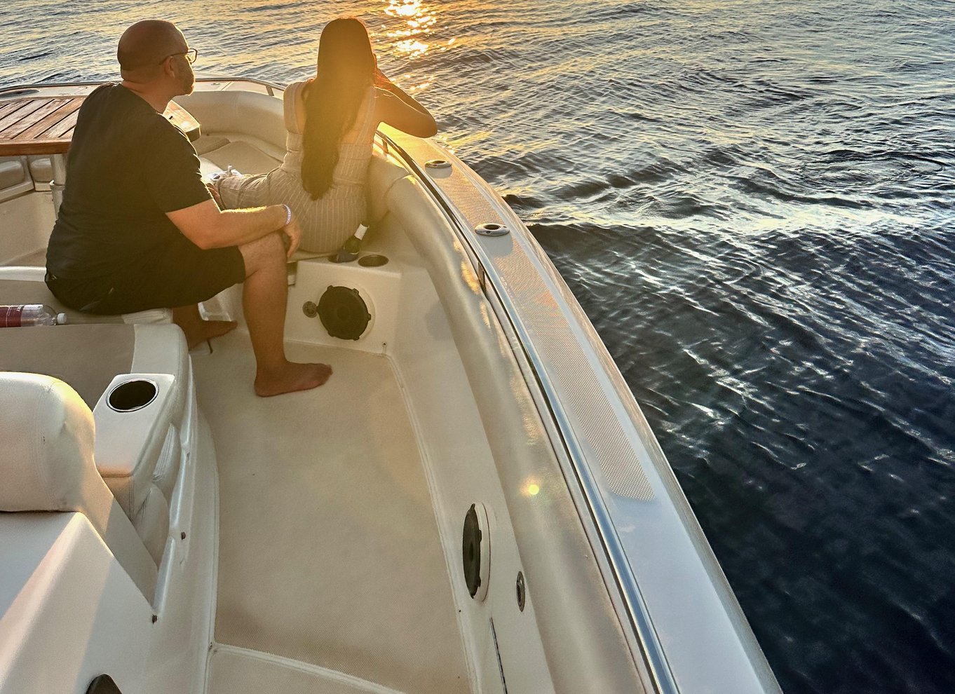 - 2 órás luxus naplementés hajóút az Amore fedélzetén, egy 42 láb hosszú Boston Whaler hajón