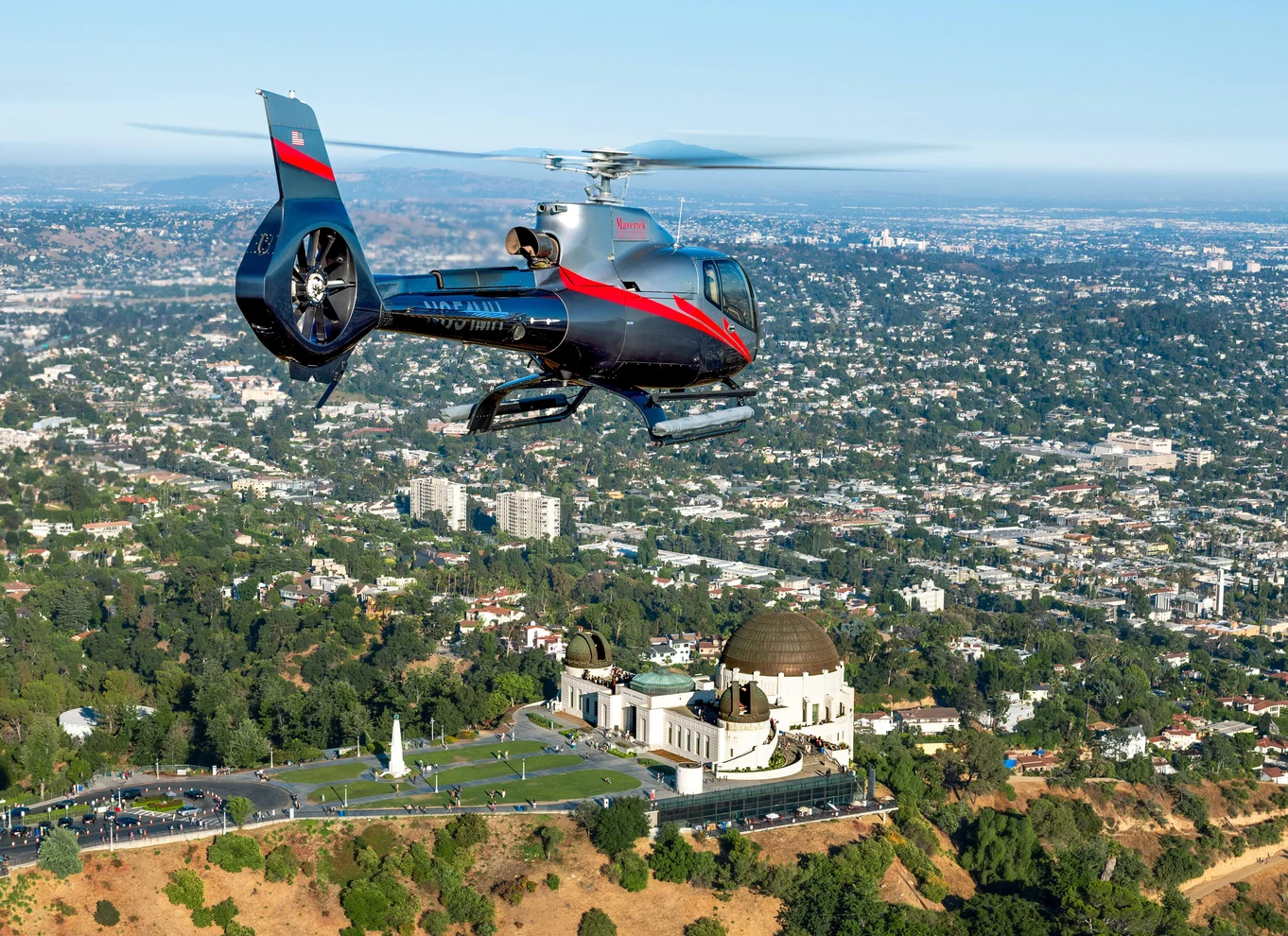 Sorvola le esclusive residenze delle celebrità nelle Hollywood Hills, a Beverly Hills e Bel Air. Goditi scorci di punti di riferimento importanti come Rodeo Drive, l'iconico Hollywood Bowl e gli Universal Studios. Ammira dall'alto le migliori viste della storica insegna di Hollywood, del Griffith Park e dell'Osservatorio e del Dodger Stadium. Passa per il cuore di Downtown Los Angeles e ammira LA Live, il Colosseo di Los Angeles e la Crypto.com Arena, sede degli LA Lakers.