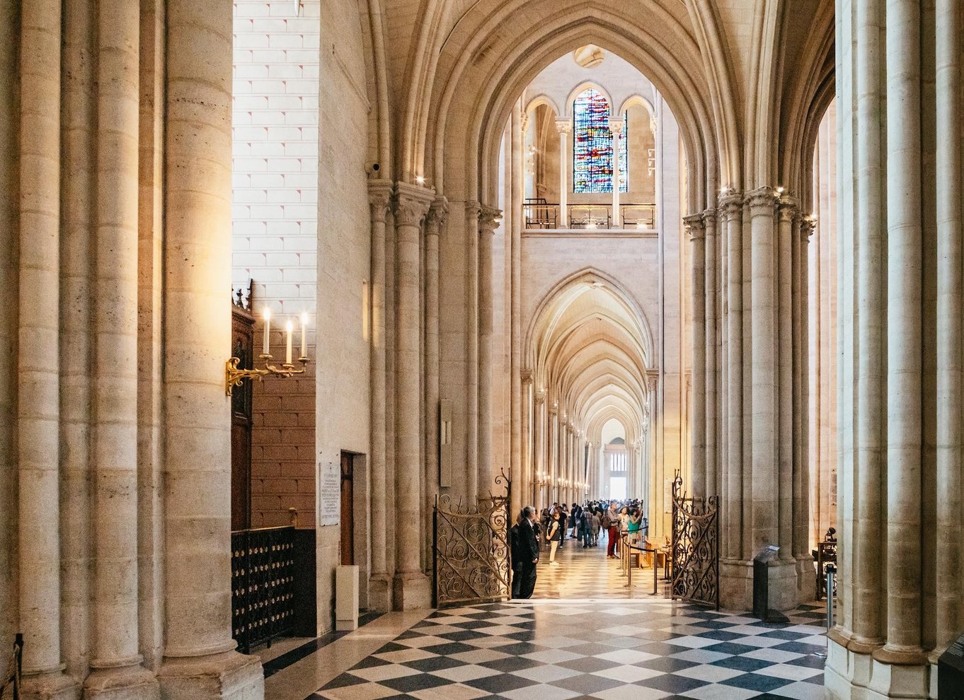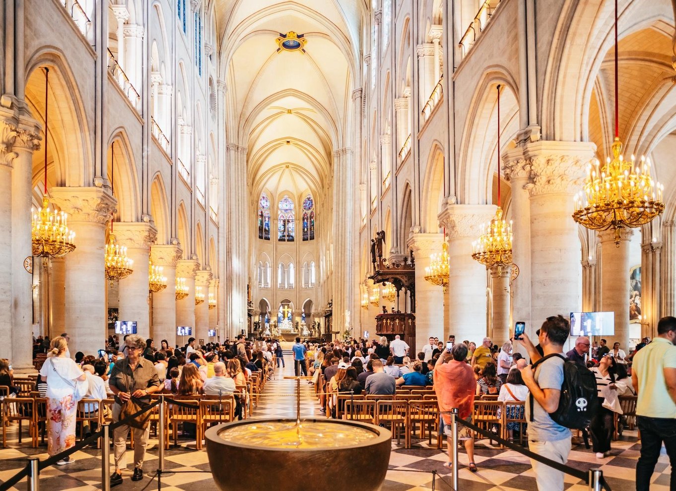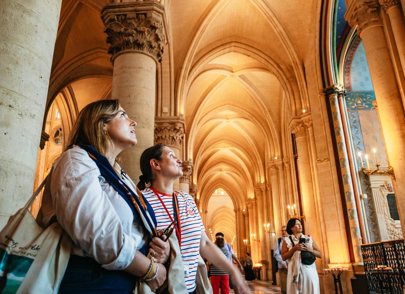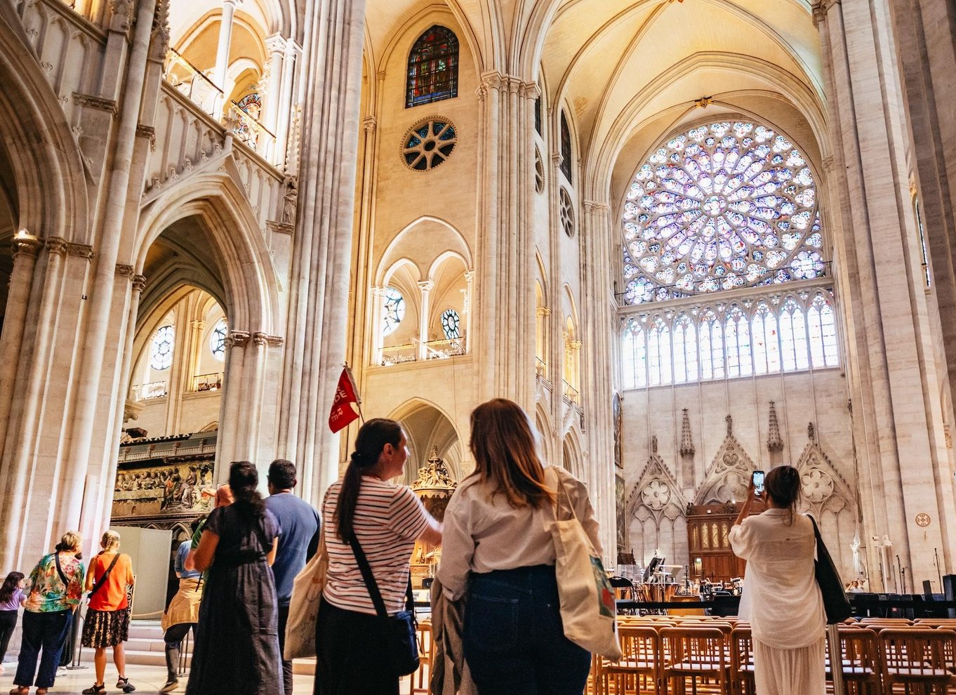 Poi, se hai selezionato l'opzione che include l'interno, entra per ammirare le splendide vetrate, gli imponenti soffitti a volta e gli interni splendidamente restaurati. Scopri gli 850 anni di storia della cattedrale, il suo ruolo nella cultura francese e gli incredibili sforzi compiuti per ripristinarla dopo il devastante incendio del 2019.