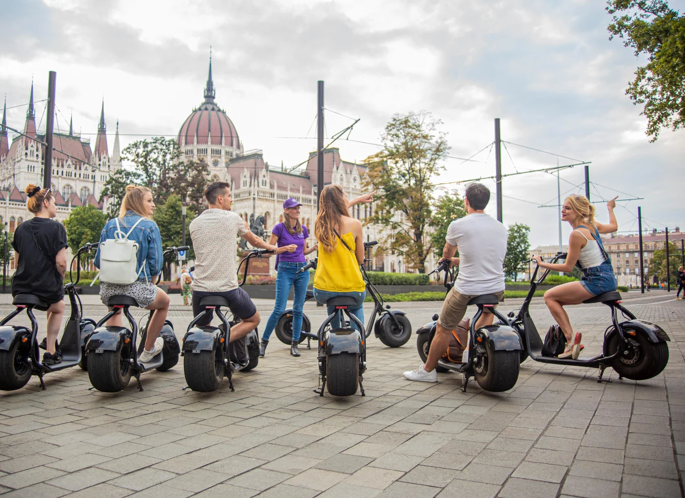 Odată pornit, vei aluneca fără probleme pe bulevardele elegante și în piețele pline de viață din Pest, acoperind mult mai mult teren decât pe jos. Vei trece pe lângă monumente emblematice precum Bazilica Sf. Ștefan, Piața Libertății și Parlamentul Ungar. În locurile cheie, grupul se oprește pentru fotografii și pauze scurte, în timp ce ghidul tău împărtășește povești captivante, informații locale și un context istoric fascinant — toate într-un stil relaxat și distractiv.