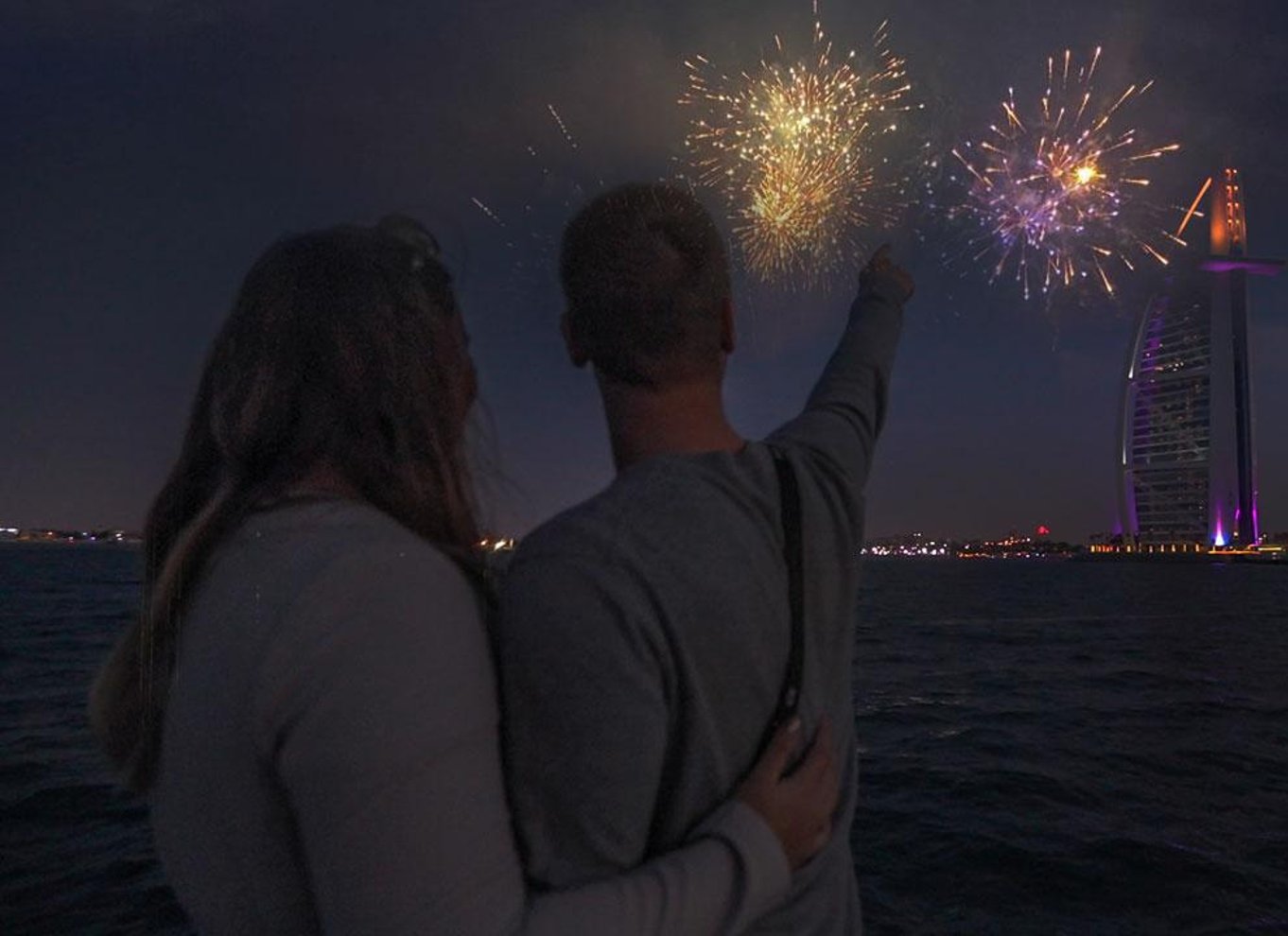 Când ceasul bate miezul nopții, vezi cum artificiile emblematice din Dubai luminează cerul de pe cel mai bun belvedere de pe apă. Artificiile vor fi lansate fie de pe Bluewater Island, fie de pe Burj Al Arab, fie de pe Palm Atlantis, în funcție de trafic, pentru o experiență perfectă și uluitoare.